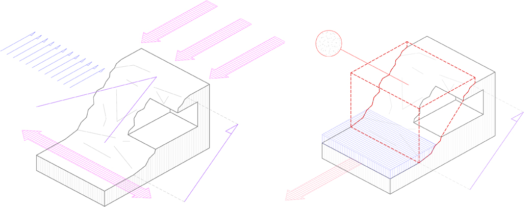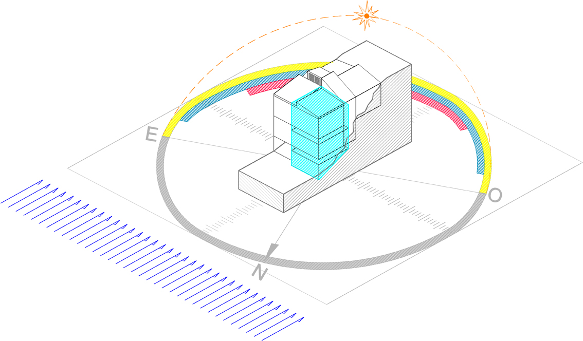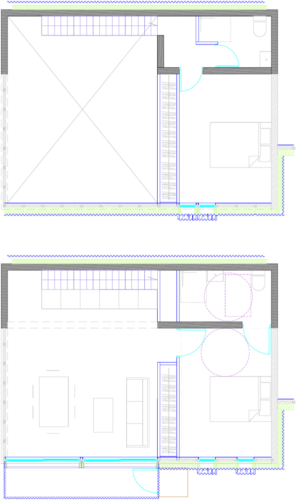 The project is the choice of expressing a habitat in the density of implantation and two totaling 11 units. These two types are as two ways to integrate into the site, two wills of dialogue with the slope and meet the demands of the various programmatic typologies. The building to the east of the site has a slender volume, placed horizontally on the rock with an opening on the panorama from the bed of the Loire. The roof is single but has inflections in conjunction with cutting of Crete rear of the cliffs. The two buildings to the west offer a vertical houses reminiscent of the country, single slope roof such as quartz cut slightly squared resonate with houses arranged in excavations troglodytes. These buildings offer a contemporary reinterpretation of the local habitat while maintaining the characteristics vernacular architecture in Turkey: fine facades on the street, shooting vertical, single slope roof, accessibility by exterior stairs.