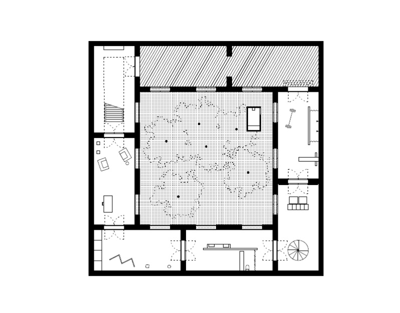 25 rooms is a proposal by OFFICE Kersten Geers David Van Severen designed in 2008. It is located in Ordos City China in a desert setting. Its scale is medium with a surface of 1.000 sqm an estimated budget of 1.000.000 € and a ratio of 1.000 €/sqm. Key material is brick. Concepts such as grid courtyard and underground are explored.