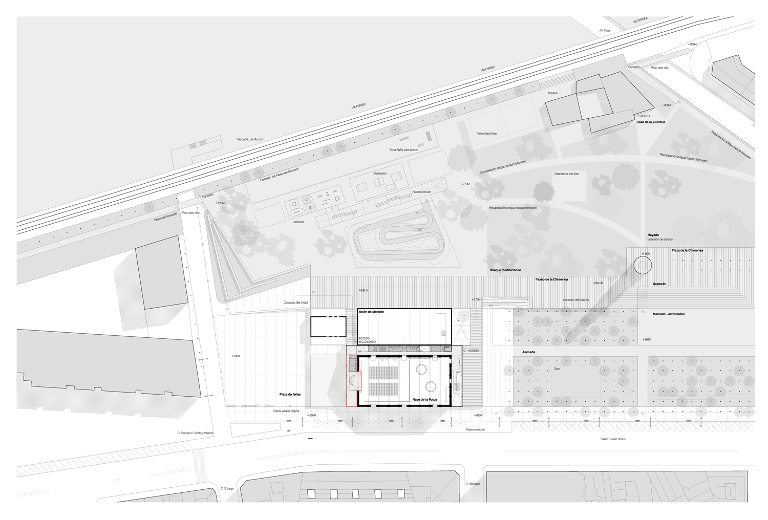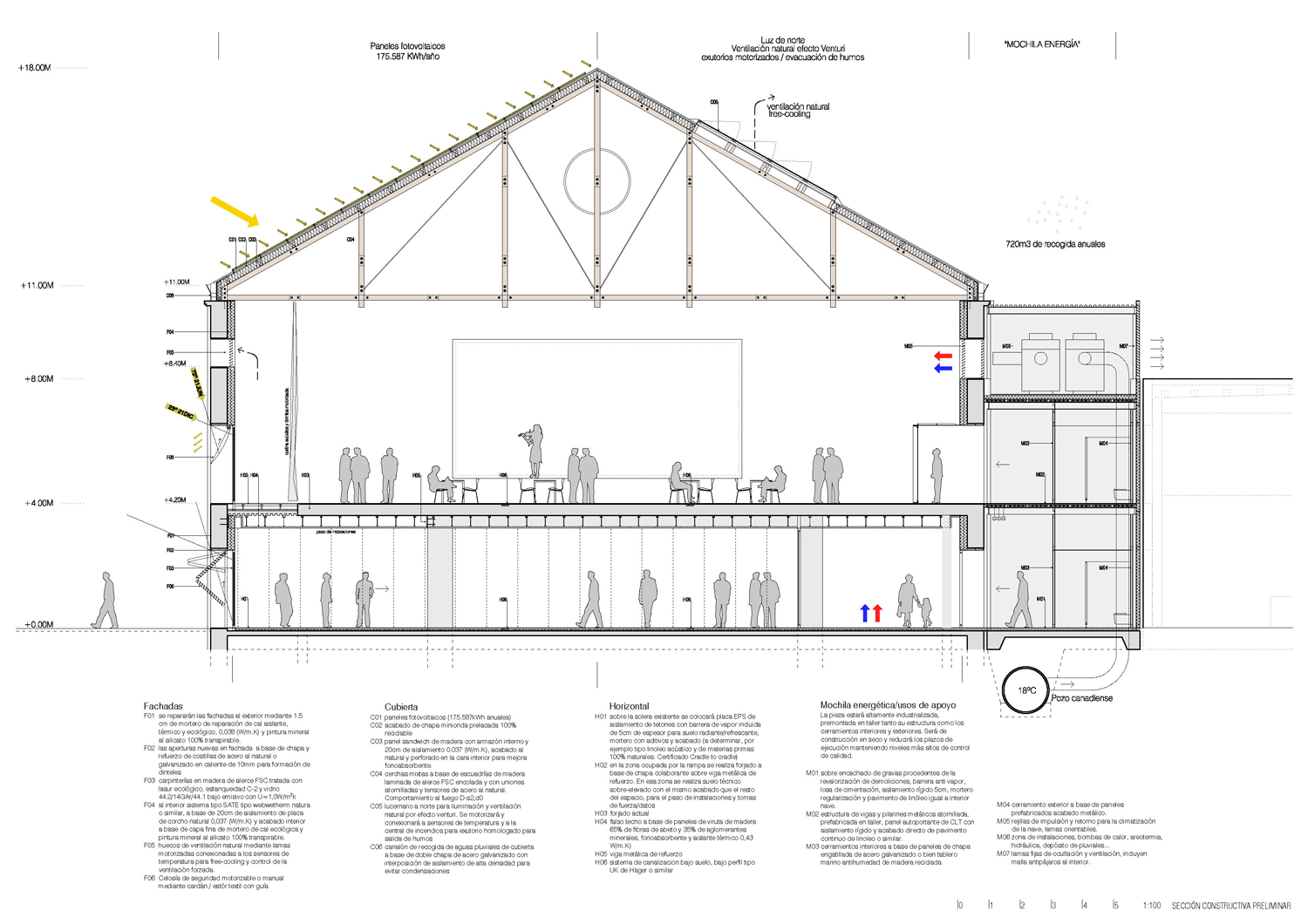 “Fragments of Nostalgia” starts from conservation, demolishing and redoing only what is not reusable, to define the most conservative actions and recover an approximate image of the former industrial heritage; to establish a serene dialogue with the context; and based on thermodynamic strategies and the industrialization of a piece, an ‘energy backpack’, including facilities and support areas, to obtain the first PEB (Positive Energy Building) public building in Monzón within the planned deadlines.