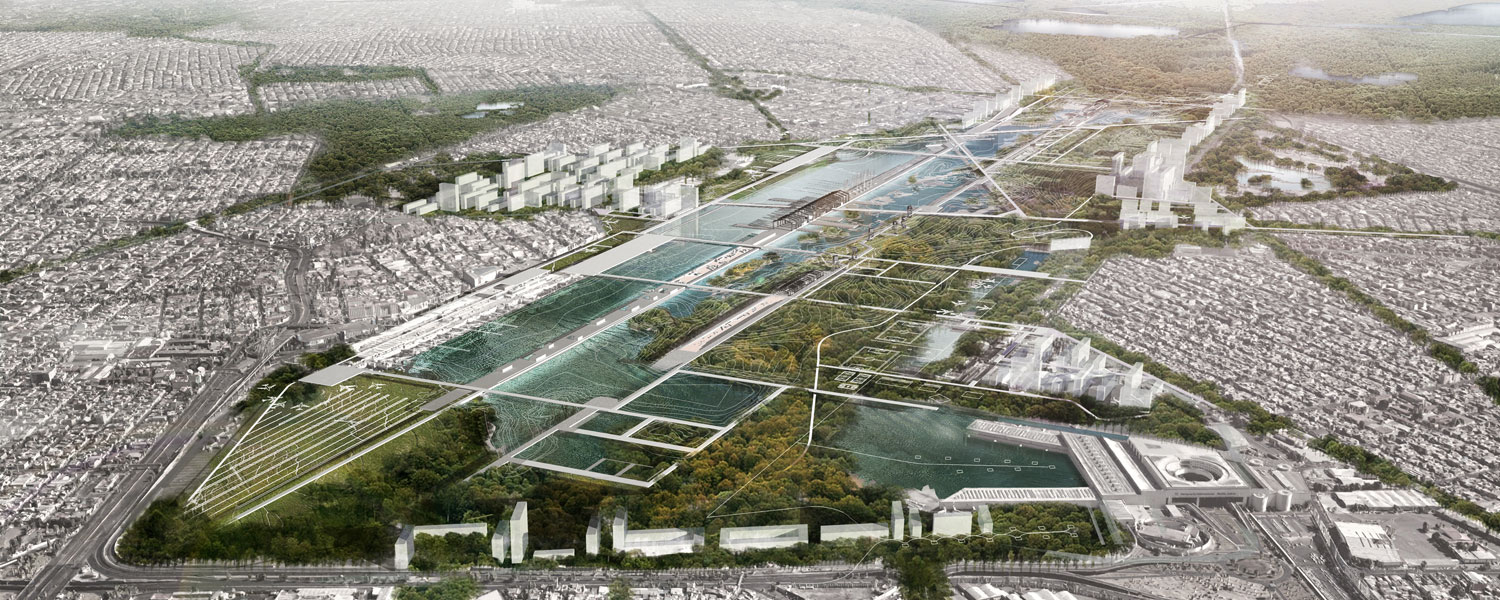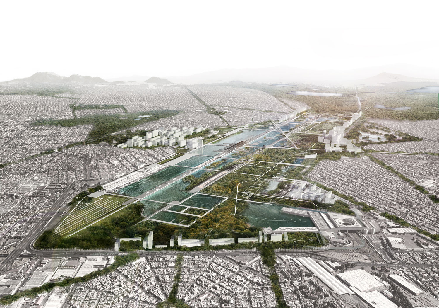 La ciudad de México poseía grandes virtudes ambientales, paisajísticas, e hídricas, las cuales, en vez de buscar entender el territorio, su composición, y tratar de convivir con ellas, fueron dejadas de lado y se llevaron a su destrucción. Esta situación se agravó cuando en vez de buscar revertir el problema, se genera un nuevo aeropuerto ocupando la zona del lago seco de Texcoco, dejando un gran vacío urbano en el nuevo ex- aeropuerto, convirtiendo el futuro ambiental de México en algo que necesita ser afrontado con urgencia. ¿Puede un parque verde ser la solución a la problemática ambiental y de conurbación tan grande que vive esta ciudad?, surge así la inquietud de si es posible con este proyecto trascender, al menos teóricamente, la manera en la que se entiende el territorio, y el como una ciudad podría relacionarse con el mismo, entendiendo todas sus complejidades y dificultades. El proyecto pretende ser algo más que un parque metropolitano, este busca convertir el polígono del ex aeropuerto en un proyecto piloto para generar una restauración hídrica y social, generando un acuerdo entre la ciudad y el paisaje, propuesta que desde su escala territorial, hasta la arquitectónica, se relacione con sus recursos hídricos y pueda convivir con ellos, incluyéndolos, no ignorándolos.