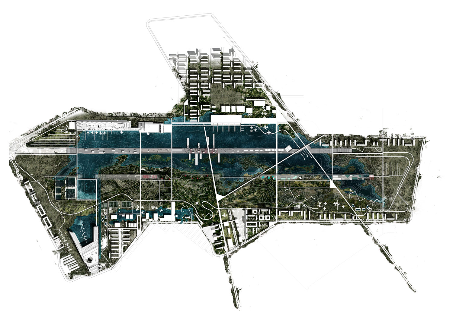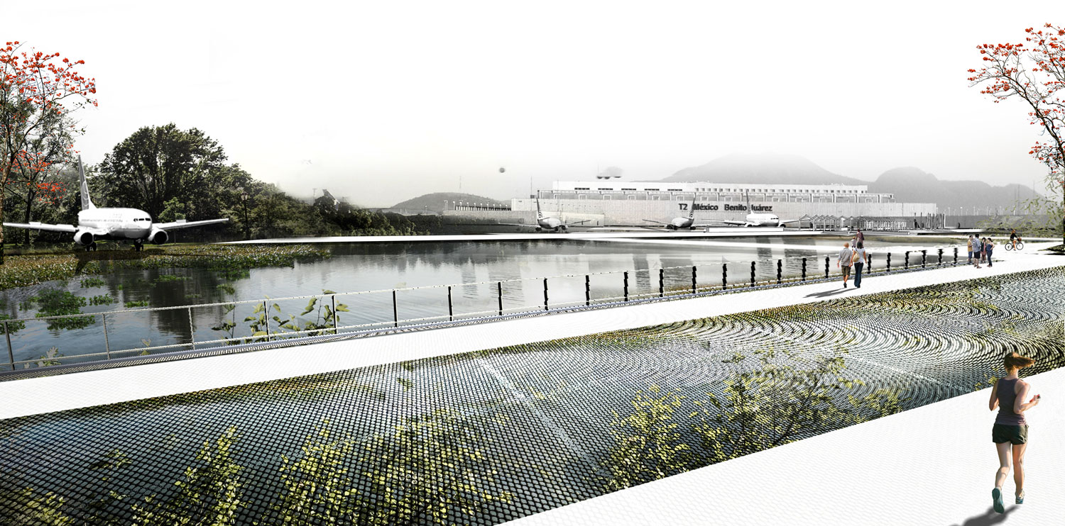 ☉ Aeropuerto de la Ciudad de México is a proposal by Sebastián Monsalve David Castañeda Andrés Velásquez Alejandro López Sara Paris Sebastian Gonzalez Juan Pablo Martínez María Camila and David Mesa for Arquine designed in 2015. It is located in Mexico City Mexico in an urban setting. Its scale is extralarge with a surface of 7.000.000 sqm. Concepts such as mobility transport network and renaturalization are explored.
