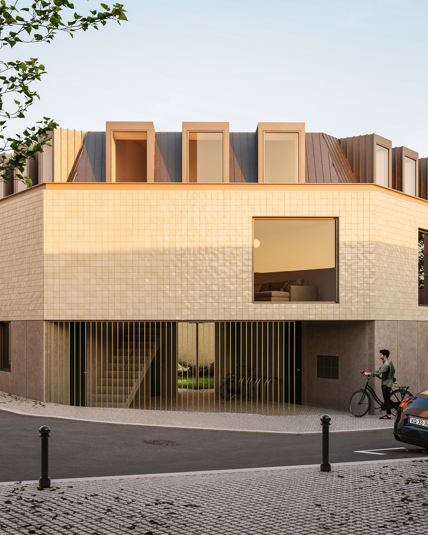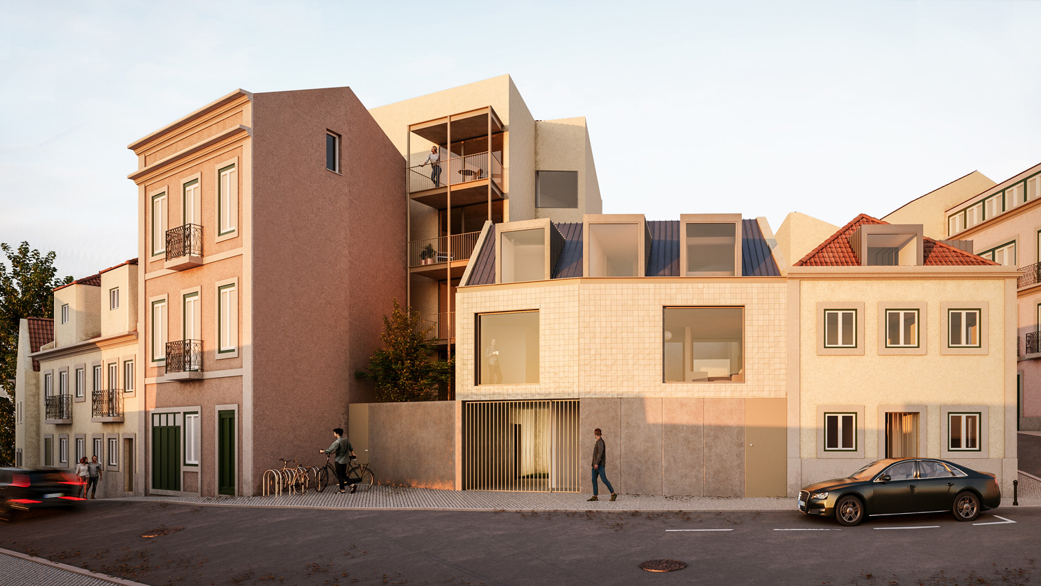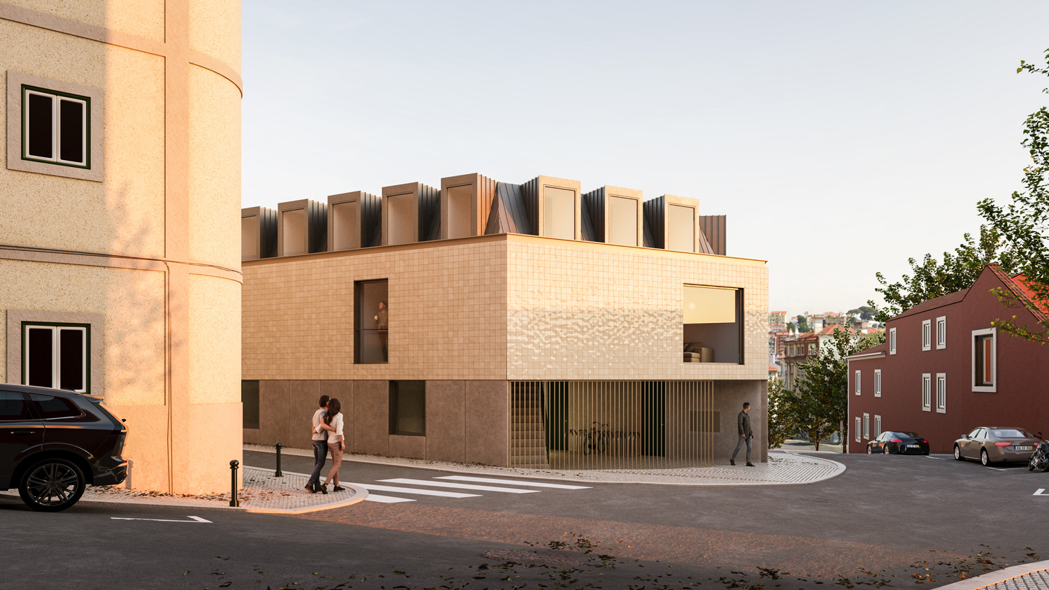 ☉ Affordable Collective Housing in Largo do Cabeço da Bola is a winning proposal by co·rp arquitetos for IHRU Instituto da Habitação e da Reabilitação Urbana, I.P. designed in 2023. It is located in Lisbon Portugal in an urban setting. Its scale is medium with a surface of 1.500 sqm an estimated budget of 3.500.000 € and a ratio of 2.333 €/sqm. Key materials are ceramic and concrete. Opere Visual collaborated as visualizer.