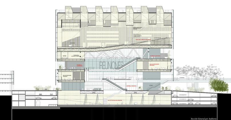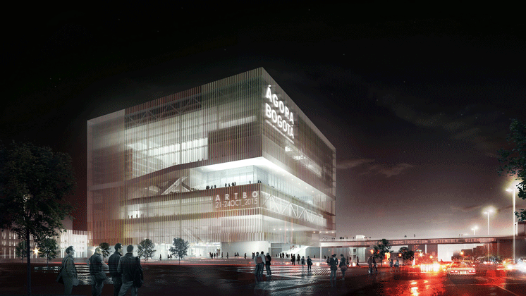 Ágora Bogotá is a winning proposal by Herreros Arquitectos for CCB/Corferias designed in 2011. It is located in Bogotá Colombia in an urban setting. Its scale is large with a surface of 70.536 sqm. Key materials are glass and metal. Concepts such as transparency stratification symbol and lattice are explored.