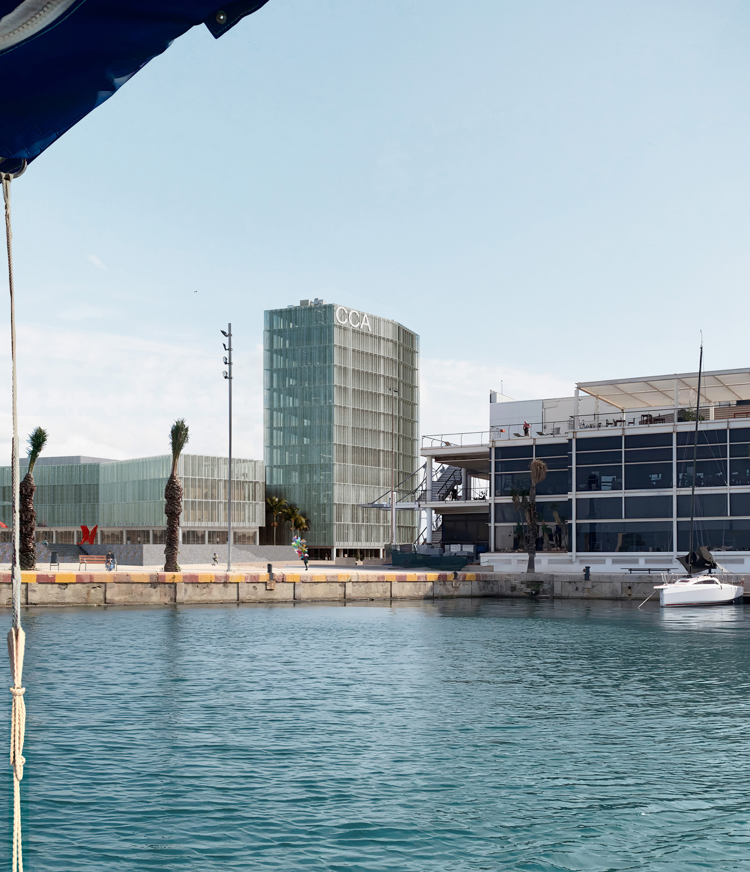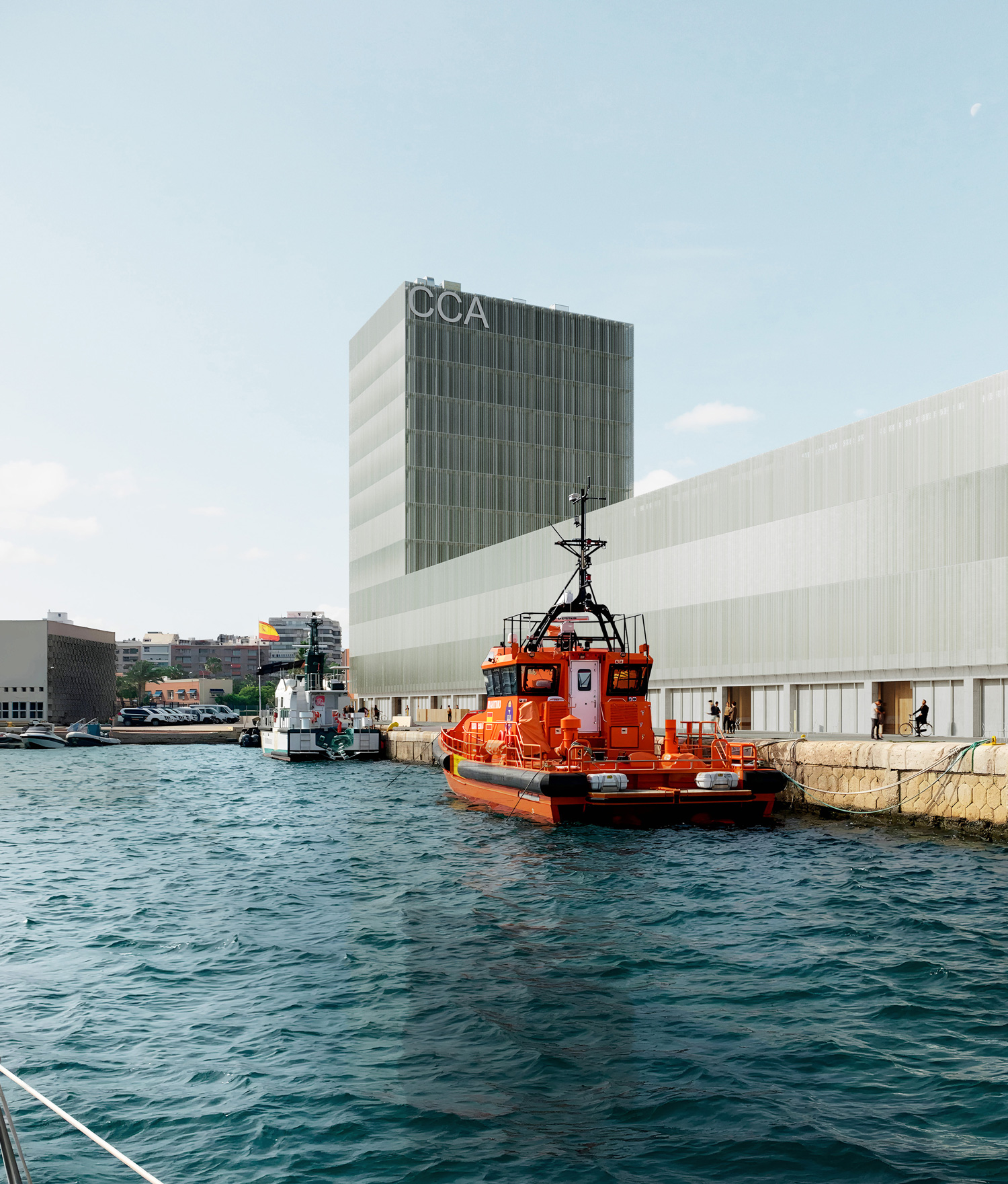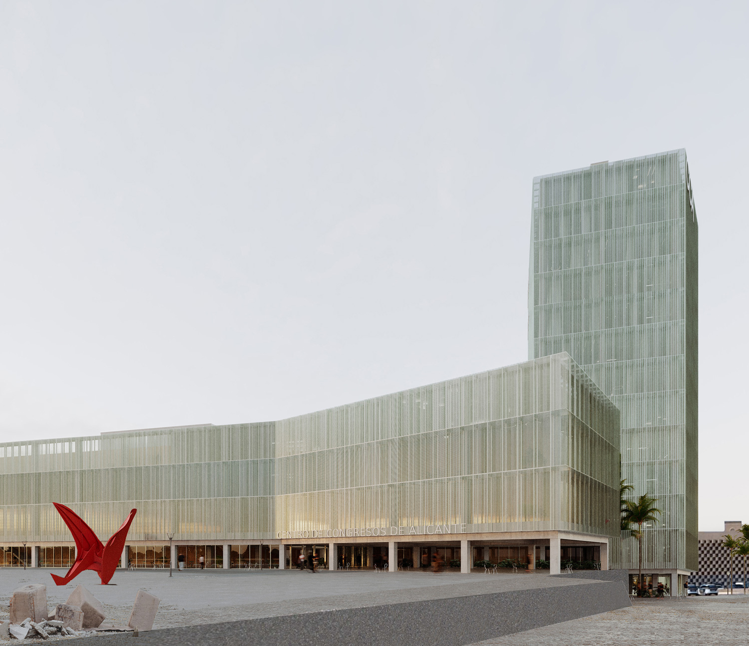 The Congress Center is seen as more than just a building; it represents Alicante’s strategic vision to elevate itself globally and become a unique urban player. Drawing from successful projects elsewhere, it’s recognized that such a proposal should not only activate the local community but also embody the positive values of its surroundings. The proposal aims to set the Center as a global benchmark for efficiency and sustainability, while locally, it seeks to engage in a meaningful dialogue with Alicante, respecting its history and culture. Specifically, it aims to revitalize the Port area, making it a hub for commercial and cultural activities and enhancing tourism offerings. The project sees an opportunity to intervene in a significant part of the city, aiming to improve the Port area and integrate it seamlessly into daily life for both residents and visitors. Recognizing the iconic landmarks of Alicante, like the Santa Bárbara Castle, the proposal aims to add to the city’s visual identity by creating a new landmark, in harmony with existing structures. This is not to diminish the challenges these structures faced during construction but rather to embrace their character and contribute to the city’s visual allure. The design of the administrative program within the Center aims to be prominent yet harmonious with the urban landscape, integrating with the surrounding environment without obstructing views. The new volume, resembling a coastal tower, will engage with the memory of Alicante’s coastal towers, contributing to the site’s multi-layered approach. The proposal focuses on developing a contemporary, user-friendly, and energy-efficient building that serves as a landmark in Alicante’s transformation, incorporating the city’s daily life and emotional connection of its citizens. The large halls prioritize audience movement, and other functions are integrated into a vertical tower, contributing to its urban landmark status.