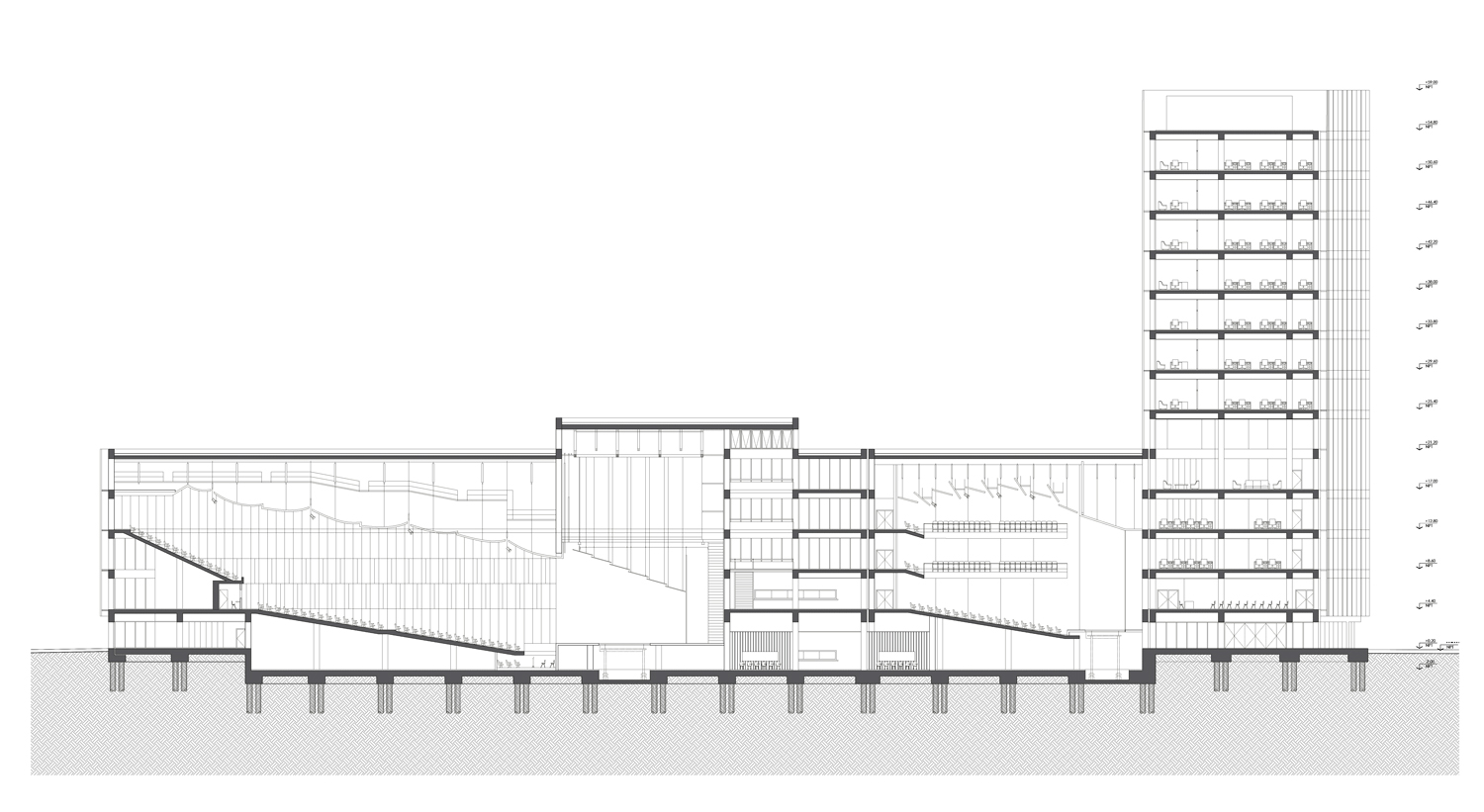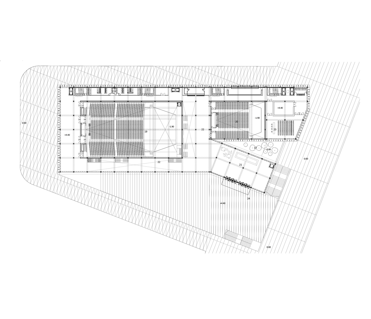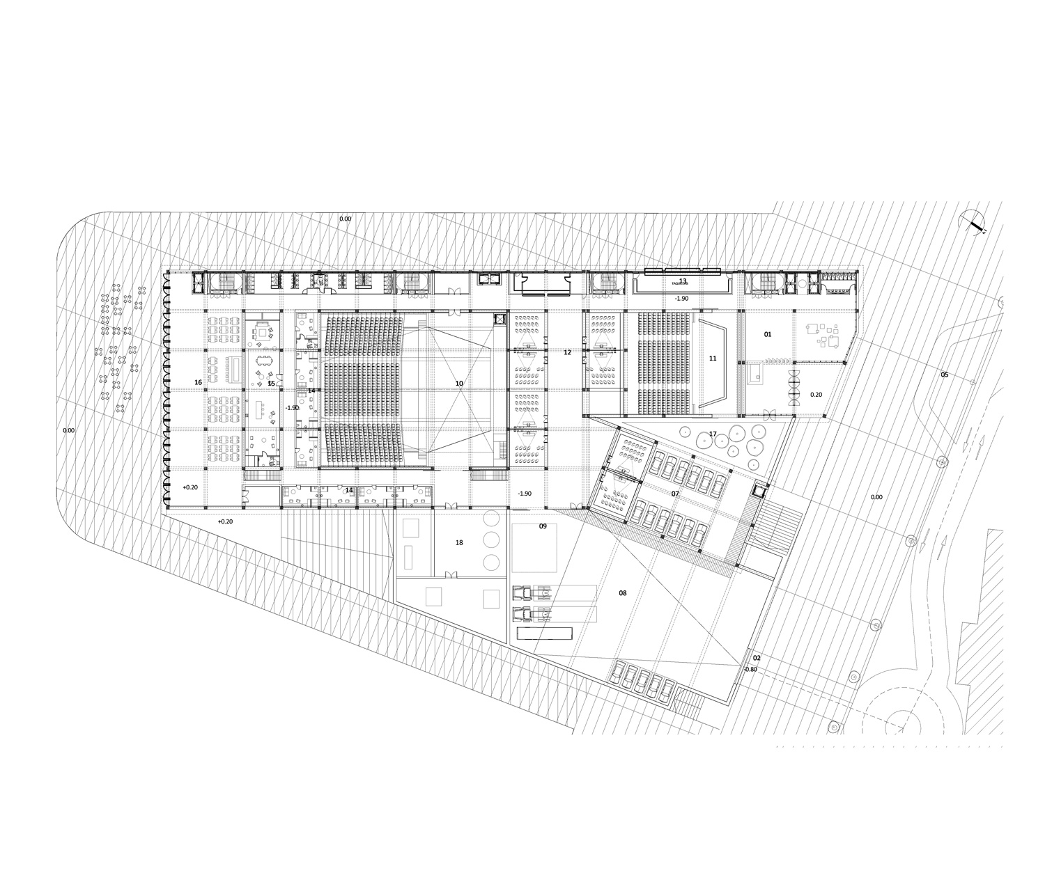 The Congress Center is seen as more than just a building; it represents Alicante’s strategic vision to elevate itself globally and become a unique urban player. Drawing from successful projects elsewhere, it’s recognized that such a proposal should not only activate the local community but also embody the positive values of its surroundings. The proposal aims to set the Center as a global benchmark for efficiency and sustainability, while locally, it seeks to engage in a meaningful dialogue with Alicante, respecting its history and culture. Specifically, it aims to revitalize the Port area, making it a hub for commercial and cultural activities and enhancing tourism offerings. The project sees an opportunity to intervene in a significant part of the city, aiming to improve the Port area and integrate it seamlessly into daily life for both residents and visitors. Recognizing the iconic landmarks of Alicante, like the Santa Bárbara Castle, the proposal aims to add to the city’s visual identity by creating a new landmark, in harmony with existing structures. This is not to diminish the challenges these structures faced during construction but rather to embrace their character and contribute to the city’s visual allure. The design of the administrative program within the Center aims to be prominent yet harmonious with the urban landscape, integrating with the surrounding environment without obstructing views. The new volume, resembling a coastal tower, will engage with the memory of Alicante’s coastal towers, contributing to the site’s multi-layered approach. The proposal focuses on developing a contemporary, user-friendly, and energy-efficient building that serves as a landmark in Alicante’s transformation, incorporating the city’s daily life and emotional connection of its citizens. The large halls prioritize audience movement, and other functions are integrated into a vertical tower, contributing to its urban landmark status.