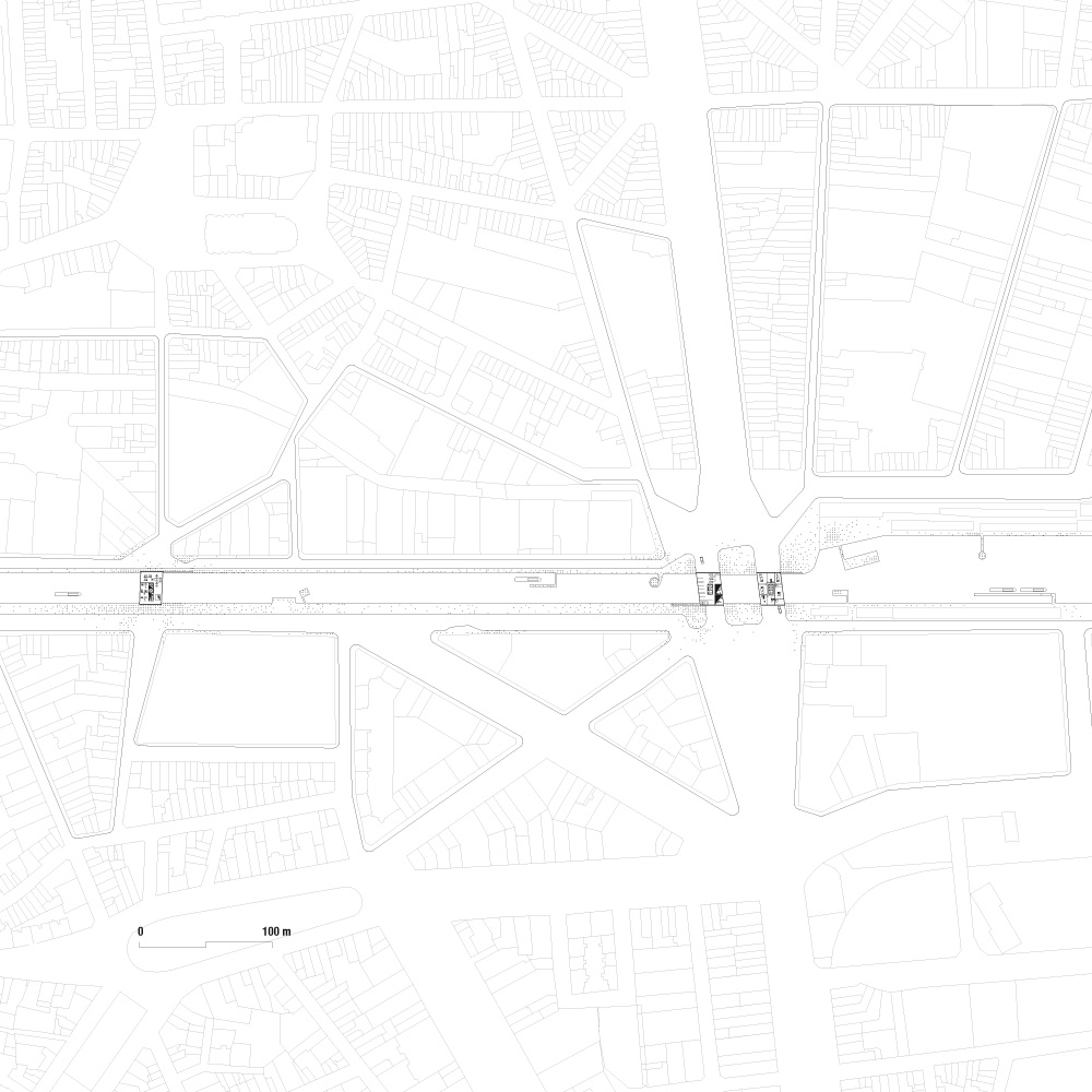 LES 18 PONTS du Canal sont pour nous autant d’opportunités de répondre à ces problématiques. Ils représentent pour nous le lieu du lien, de l’échange physique et symbolique entre les berges. Ils sont le lieu du dégagement maximal, leur emprise échappe au vis-à-vis direct, perpendiculairement au Canal. Placés hyper stratégiquement, ils sont au croisement des réseaux de la ville et du Canal. DENSIFIER LES LIENS, c’est-à-dire les ponts, consiste pour nous à redéfinir la condition du Canal par la densité bâtie. Les liens deviennent de véritables morceaux de ville, de nouveaux espaces publics activés, couverts…