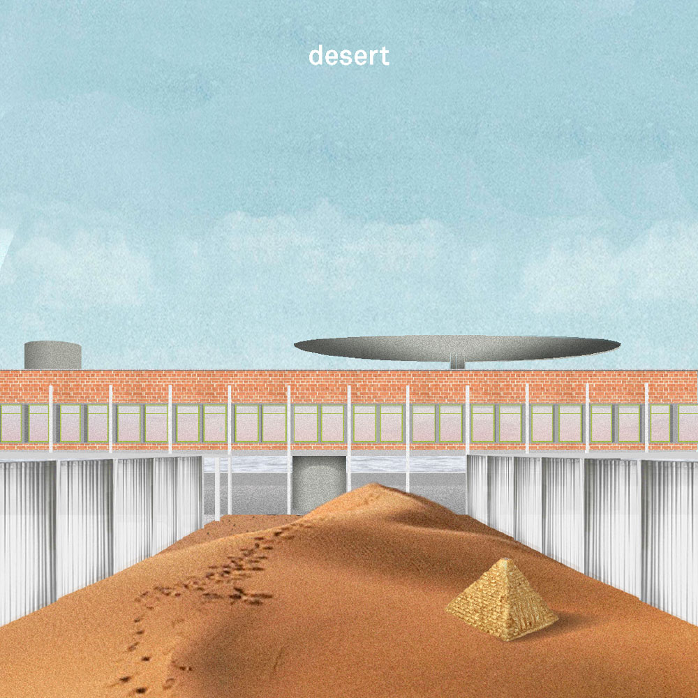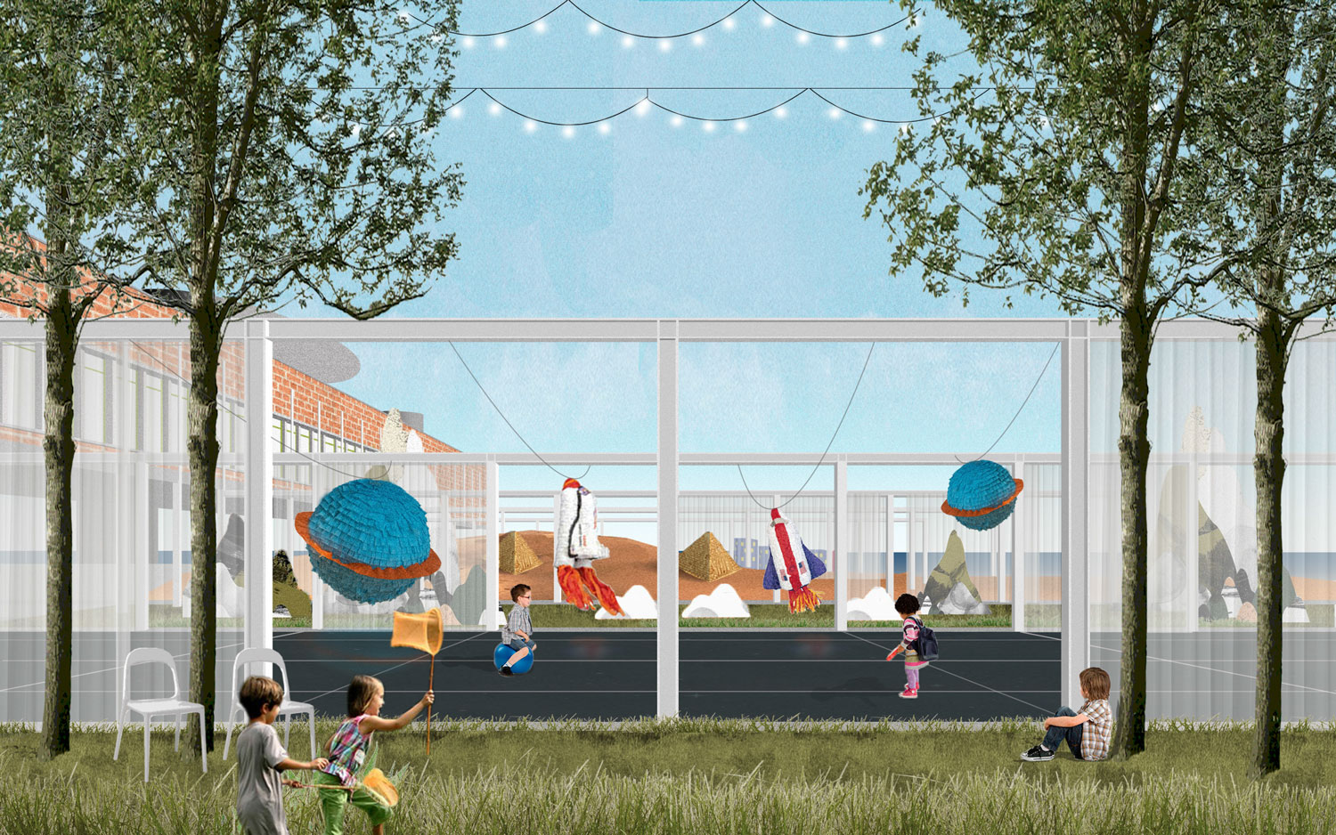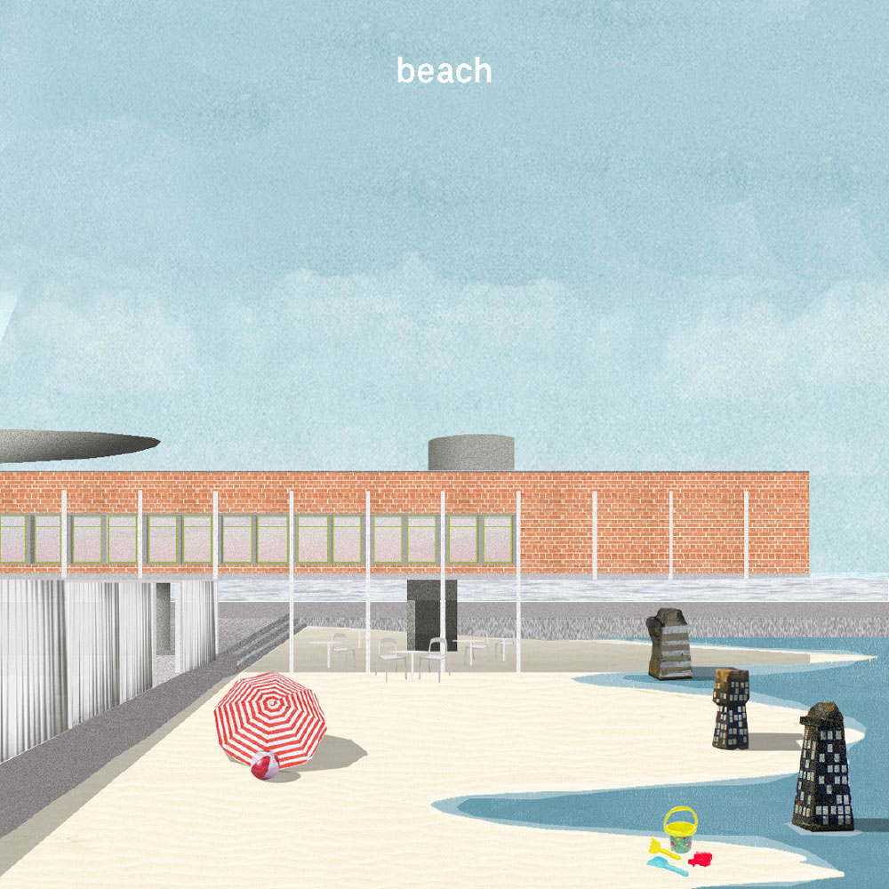 In 1657, in Netherland, the painter Pieter de Hooch realised The Courtyard of a House in Delft. In the painting, the urban space and the domestic space are mixed and the city can be seen as a sequence of spaces, a continuity of different rooms. The building, which contains all the functions connected to the daycare, is arranged along a corridor located in the norther side of the plot. The volume, uplifted from the soil, designs the exterior spaces which interlay occupies the site. At first a public piazza, facing the sidewalk, allows the entrance to a sequence of spaces with a special environmental connotation: a sequence of Dioramas. We cross the forest, the cosmos, the mountain, the desert and the metropolis to nally reach the beach at the end of the pier, untouched by the project. The daycare is the first public room in the human experience, the dioramas, as samples of the entire world, are able to teach the kids about our environment by giving them a playful experience.
