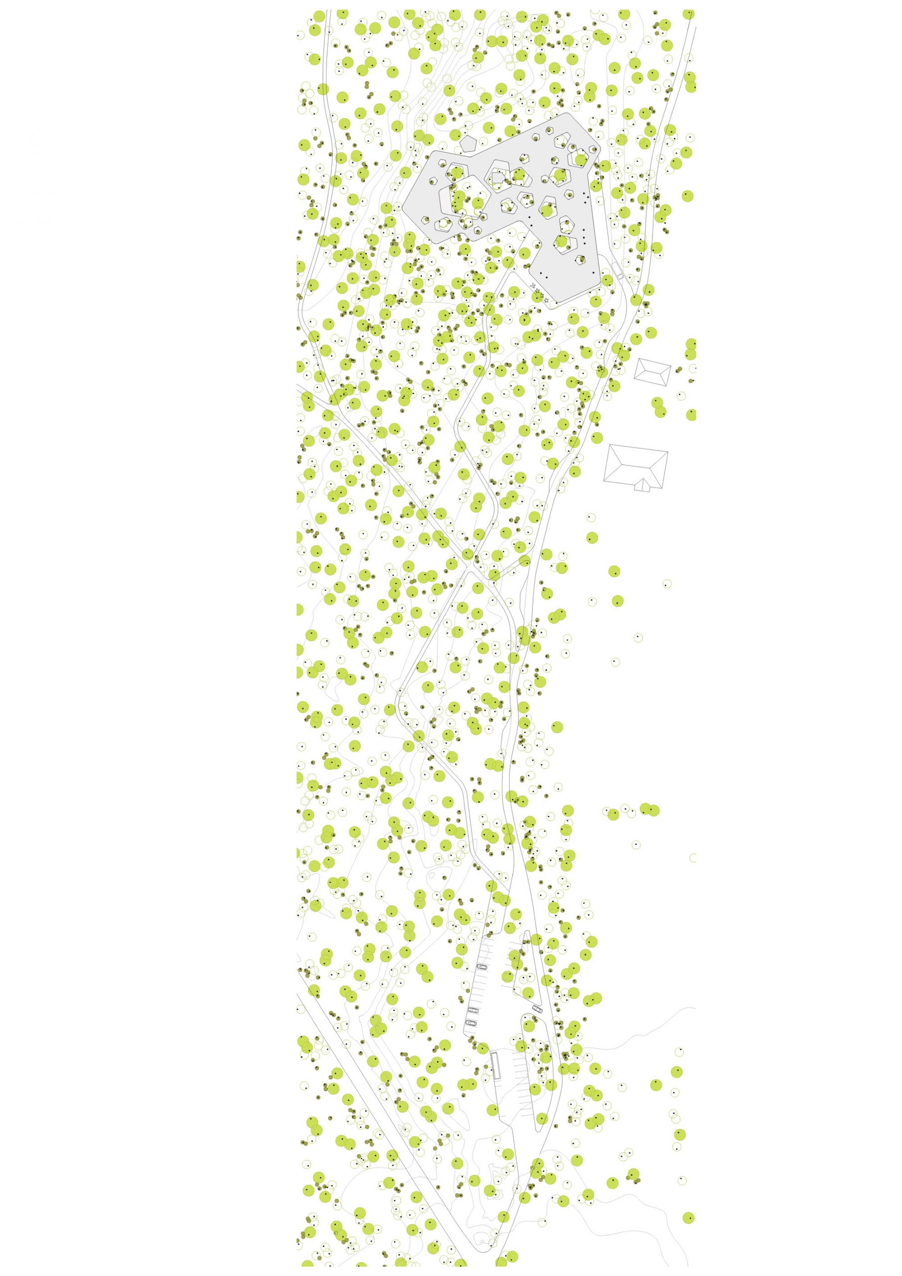 The Arvo Pärt Centre was founded in 2010 by thehighly recognized and internationally respected Estonian composer, Arvo Pärt, with the aim of preserving and studying his creative heritage. The new building will be built in a natural landscape located on a peninsula covered with a dense pine forest, 35 km from Tallinn. The proposal is conceived as a sequence of interconnected public and private spaces below a large single roof. The program of uses includes the foundation’s archives, library, workshops, office rooms, as well as exhibition spaces and an auditorium for concerts, performances, conferences, and films. The project seeks a balance between the intimacy of Arvo Pärt’s musical compositions and the powerful beauty of the Estonian landscape.The radical decision of preserving all the pine trees, generates a dialogue between the unitary structure of the roof and the playful disposition of the courtyards, an interpretation of void and silence as the hidden protagonists of architecture and music.