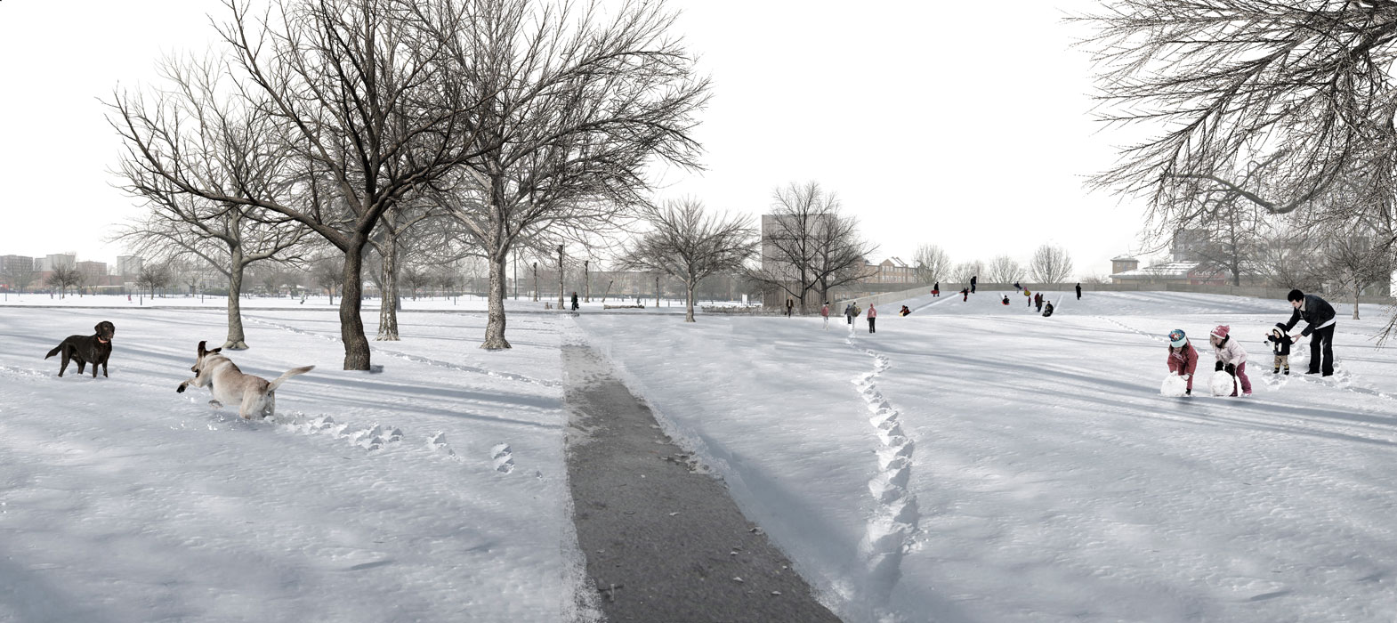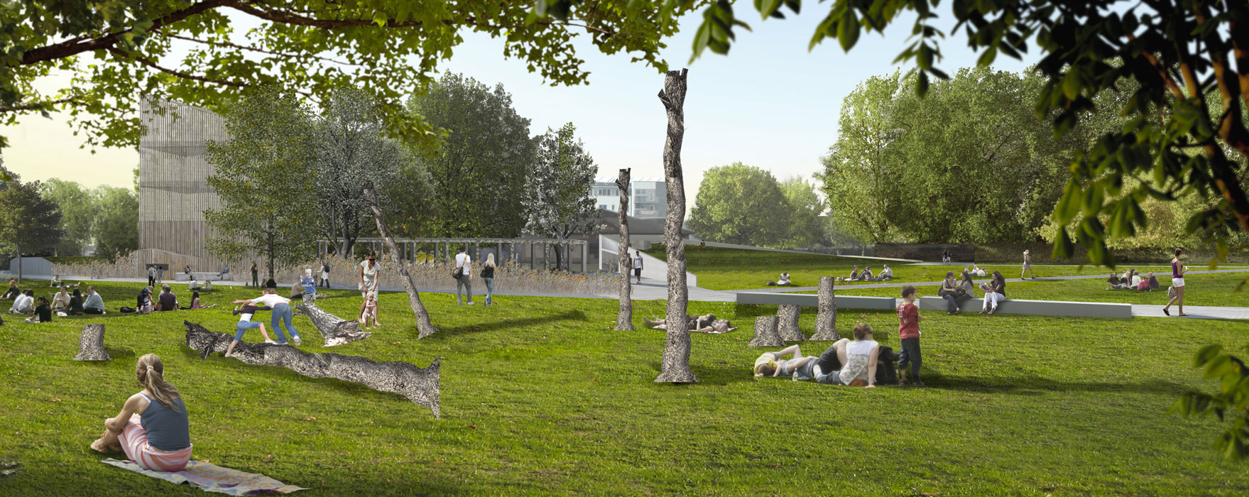 Barking Abbey Green is a winning proposal by Lynch Architects designed in 2009. It is located in London United States in a park setting. Its scale is large. Concepts such as lightweight structure and nature are explored.