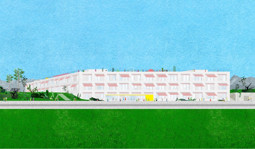 ☉ Bateau-Mère Primary School is a proposal by Fala for Commune de Romont designed in 2014. It is located in Romont Switzerland in an urban setting. Its scale is medium. Key material is concrete. Concepts such as swastika usable roof and opening are explored. Review the 2 proposals for the same competition.