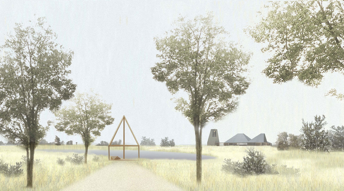 This new Church for the Beacon Hill Baptist Community is located in 100 acres of prairie, on the outskirts of Tulsa, Oklahoma, USA. The design of the Church seeks a fundamental relationship with its expansive landscape setting and the project encompasses its orchestration, including the creation of a baptismal lake and a memorial pavilion. Recognising the breadth of activity which the church engages in beyond worship, complementary functions are spread hierarchically between a number of individual but connected houses, with the main congregational space at their centre. This ensemble of pitched roofed, shingle clad forms creates an abstract but seemingly familiar figure within the prairie landscape. The main space, whilst it has a degree of directionality signified by the altar, is permeable and open on all sides to the landscape.