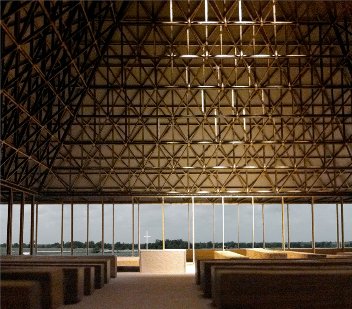 Beacon Hill Baptist Church is a winning proposal by DRDH Architects designed in 2013. It is located in Tulsa OK United States in a countryside setting. Its scale is small with a surface of 1.000 sqm an estimated budget of 1.500.000 € and a ratio of 1.500 €/sqm. Key material is wood. Concepts such as broken volume sloped roof lightweight structure and zenithal light are explored.