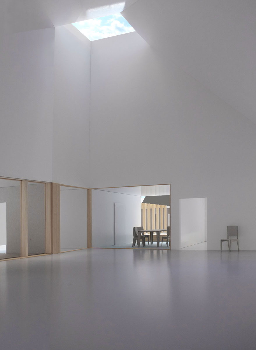 A further fundamental difference is revealed in their internal material and structural resolution. Each house shares the common spatial theme of a central roof-lit volume, held within a deep ancillary edge. Yet whilst in the surrounding houses these are lined and abstract, within the worship space an extremely delicate timber lattice is revealed, embodying sacred geometries within its construction. The current programme, defines the project in two phases. Phase One includes the Fellowship and Children’s Houses along with a connecting pergola that predicates the later buildings.