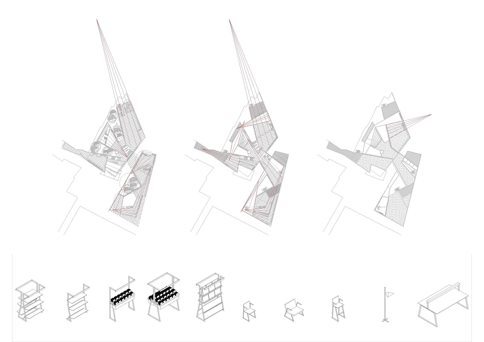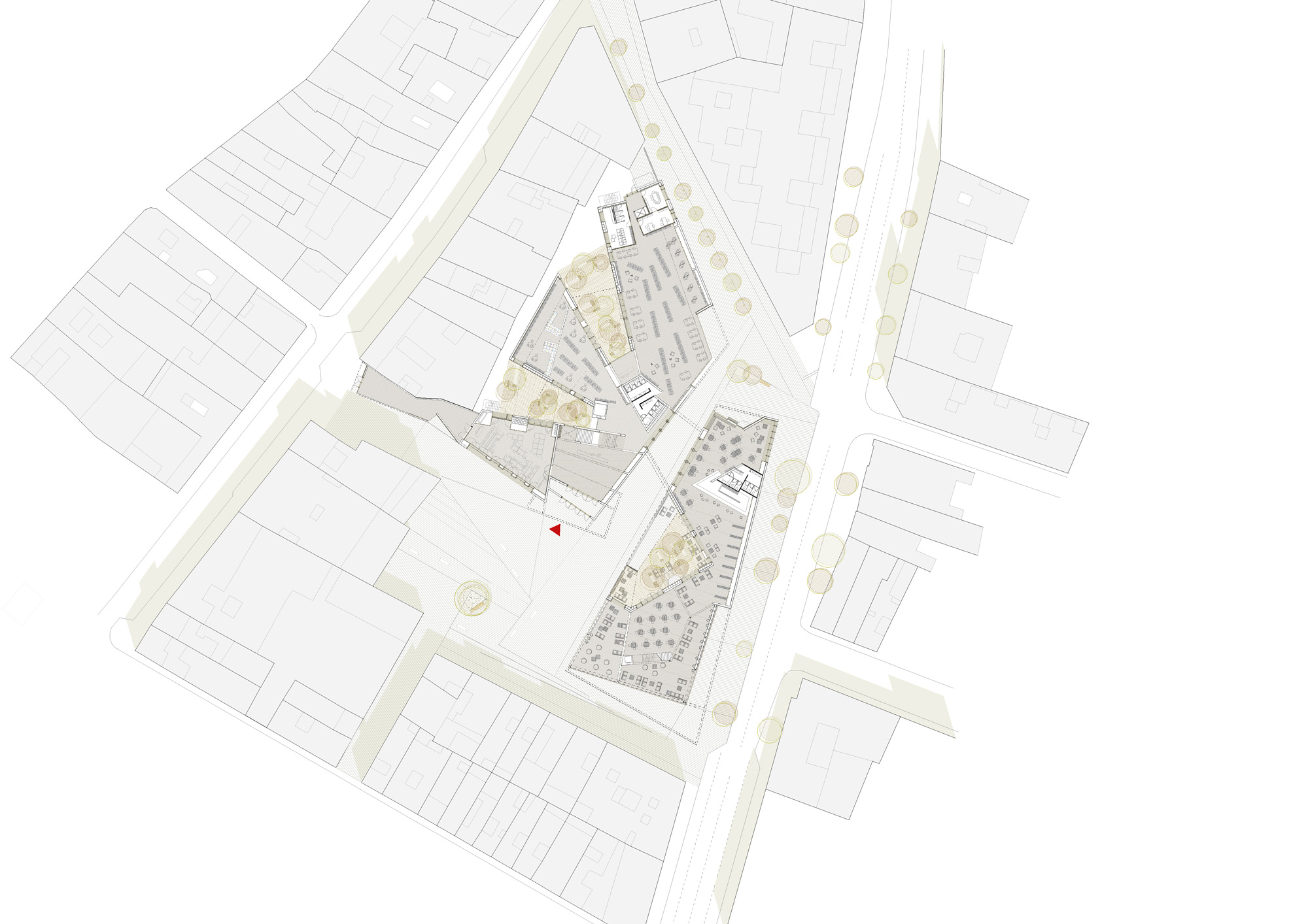 ☉ Biblioteca pública en Reus is an academic project by Flo Meucci for ETSA Reus designed in 2015. It is located in Reus Spain in an urban setting. Its scale is large. Key materials are concrete and wood. Concepts such as broken volume sloped roof party wall and courtyard are explored.