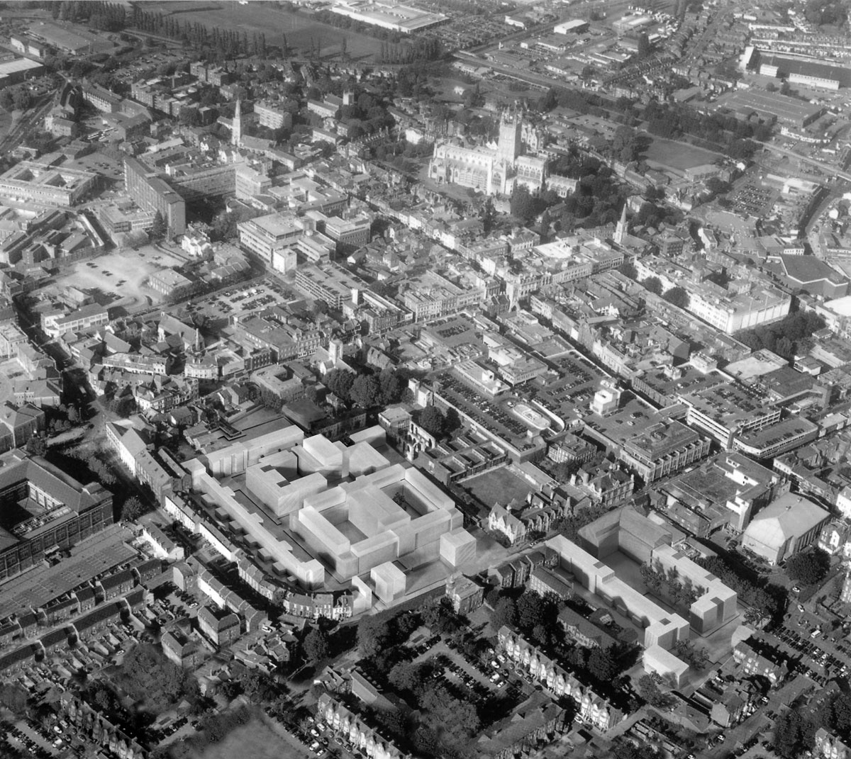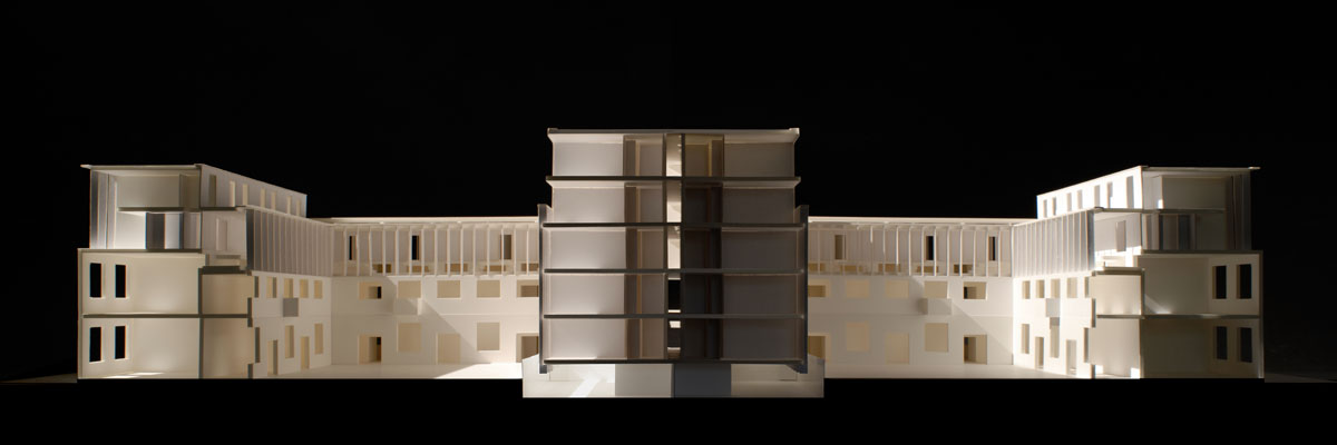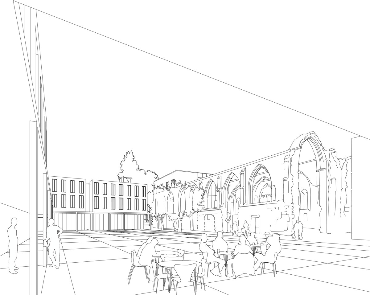 Two large sites, in the centre of historic Gloucester, were the subject of an invited, developer led competition by English Partnerships undertaken in collaboration with FCB Studios. The main site was occupied by a 1930’s college building, which sat on the line of the Roman wall, and was edged by the historic route of the Via Sacre and the ruins of Greyfriars Priory. Countering the premise of the brief the proposal, for 320 residential units, began with an appreciation of the existing qualities and built fabric on the site and developed through the re-integration of this into the wider townscape, through a variety of scales of built form and urban space. These were characterised as streets, public squares, private courtyards and gardens, each negotiating in a different way between the complex requirements of contemporary city life and the particularities of a historic collegiate context. Our proposition was to repair and extend the existing college building which dominated the larger site, whilst also defining a series of new building typologies, which would offer a diverse range of accommodation and building form, allowing a desirable mix of tenures to co-exist. The proposal was shortlisted to the final two.