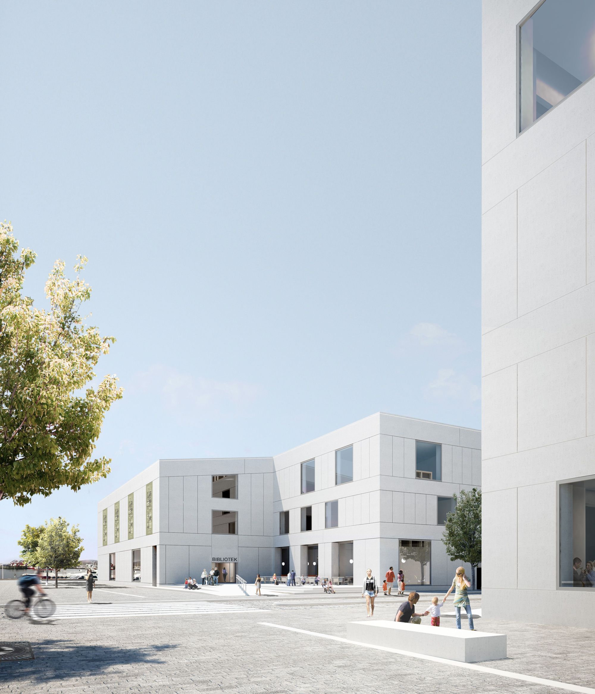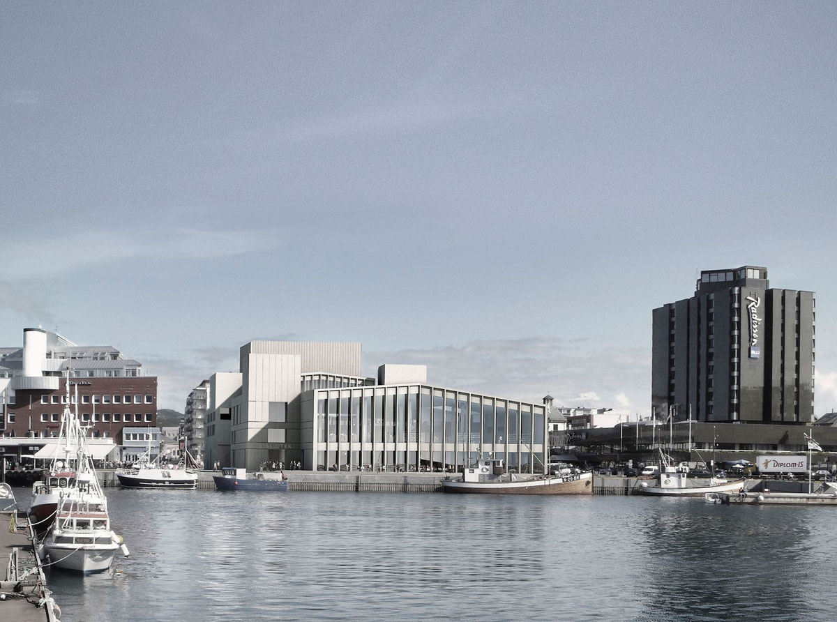 Through an invited international competition in 2009, DRDH was awarded the design of a new Library for the city of Bodø in northern Norway. The invitation followed on from a previous open competition for the masterplan of the city’s Cultural Quarter in 2008, which the practice won. The City Library is one of two principal buildings within the Cultural Quarter, alongside a Concert Hall and Theatre also being designed by DRDH. Both buildings respond to the particularities of their context, situated between city and landscape, whilst maintaining a familial relationship that creates an urban ensemble. Externally, both façades display a trabeated construction of pre-cast concrete, with an aggregate of local white stone. Forms rhyme between them. Roofs and towers speak to one another and the library establishes a horizon, across which the Concert Hall surveys the dramatic landscape of sea and mountains. Internally however the buildings offer quite different characters. The principal spaces of the Library describe an open internal landscape, which focuses upon the main reading space with its glazed elevation to the harbour. The building includes a number of other community functions including a flexible performance space, a gallery, a multifunction room and a café. These are defined as a series of rooms that face the city streets. The building is open to both the city and the harbour, with entrances connected by an internal street. The childrens library, at the top of the building, is more intimate, nestled beneath an inverted roof form and focused around an external play court. Throughout the detailed design stages, the project has been coordinated through extensive use of Building Information Modelling (BIM). The proposal is currently at construction stage and is due to be completed in 2014.