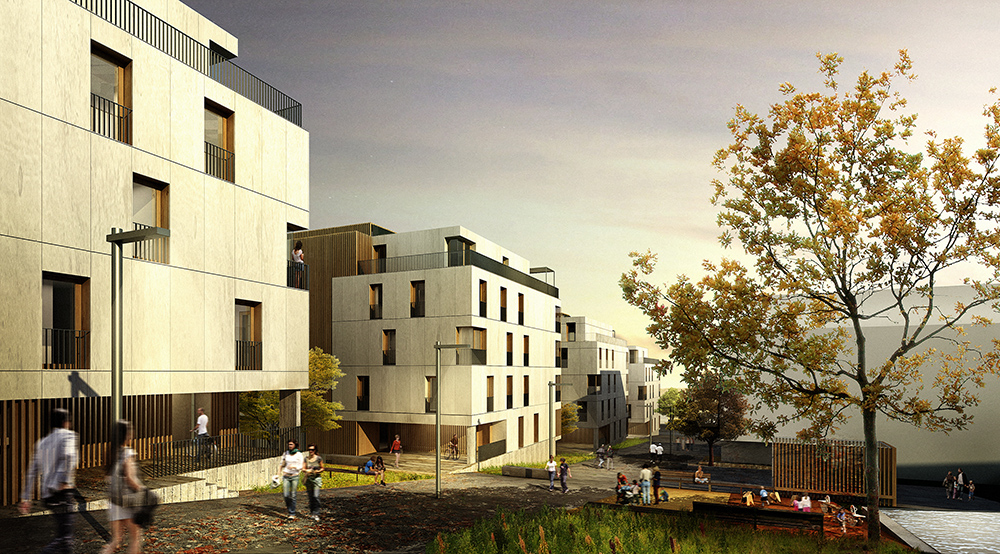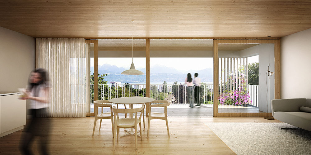 ☉ Boites en bois is a finalist proposal by 2+2 architecture for Société Lausannoise pour la Construction de Logements designed in 2012. It is located in Lausanne Switzerland in an urban setting. Its scale is large with a surface of 19.700 sqm. Key material is wood. Play-Time collaborated as visualizer. Concepts such as balcony cells and central core are explored. Review the 3 proposals for the same competition.