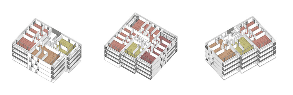 Energie: Système de captation d’énergie solaire photovoltaïque sur les toits aménagés en espaces verts sur tous les blocs. L’énergie obtenue par ce système compensera la dépense énergétique des espaces publics, du parking et d’une partie des bâtiments.