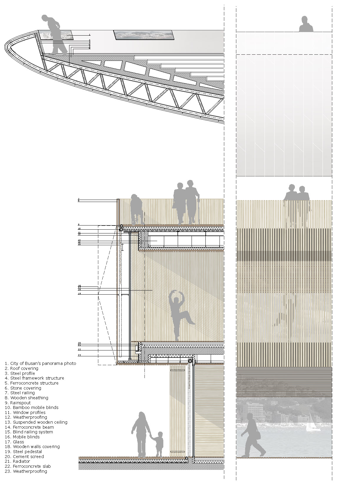 ☉ Busan Opera House is a thrid prize proposal by Henning Larsen and Tomoon Architects for Busan Metropolitan City designed in 2011. It is located in Busan South Korea in a seaside setting. Its scale is large with a surface of 47.100 sqm. Key material is metal. The concept of usable roof is explored. Review the 2 proposals for the same competition.