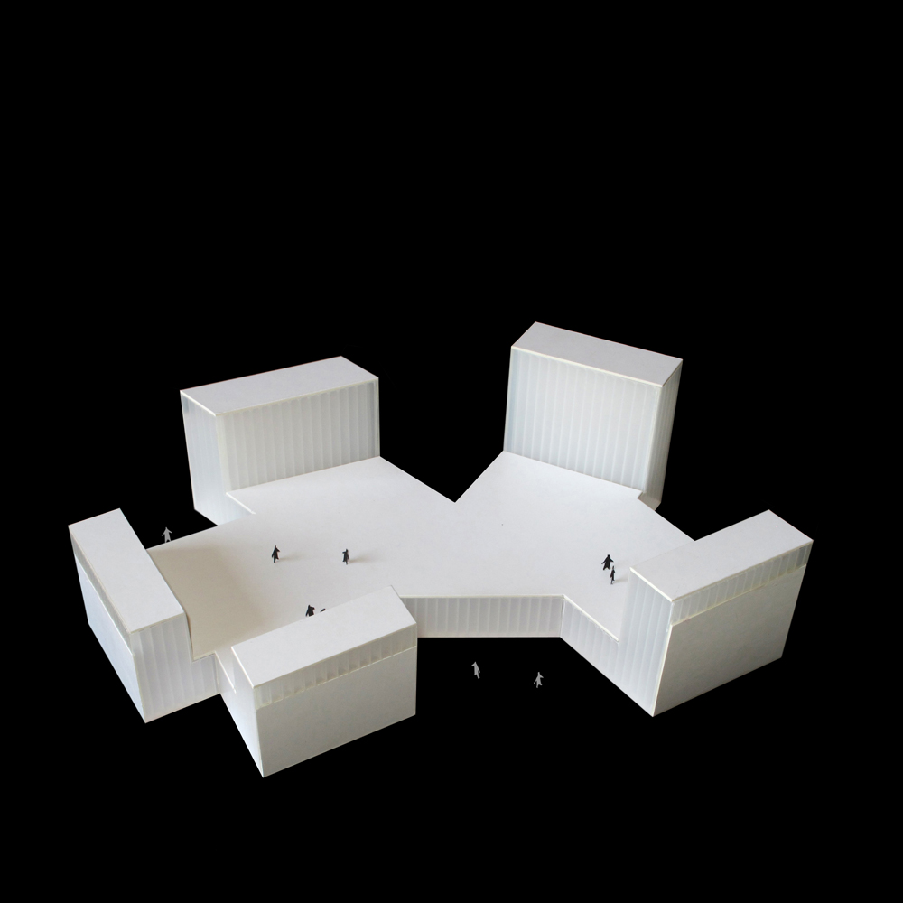 El Café Cultural se configura a partir de un volumen único al que se le aplica un proceso de deformación y plegado con el objetivo de construir un nuevo volumen capaz de estructurar la relación con el entorno y las necesidades programáticas presentes y futuras. Una pieza compleja que construye una rica red de relaciones entre los diferentes espacios interiores y exteriores, un edificio abierto al barrio, que busca entrelazarse con el tejido urbano al que pertenece.