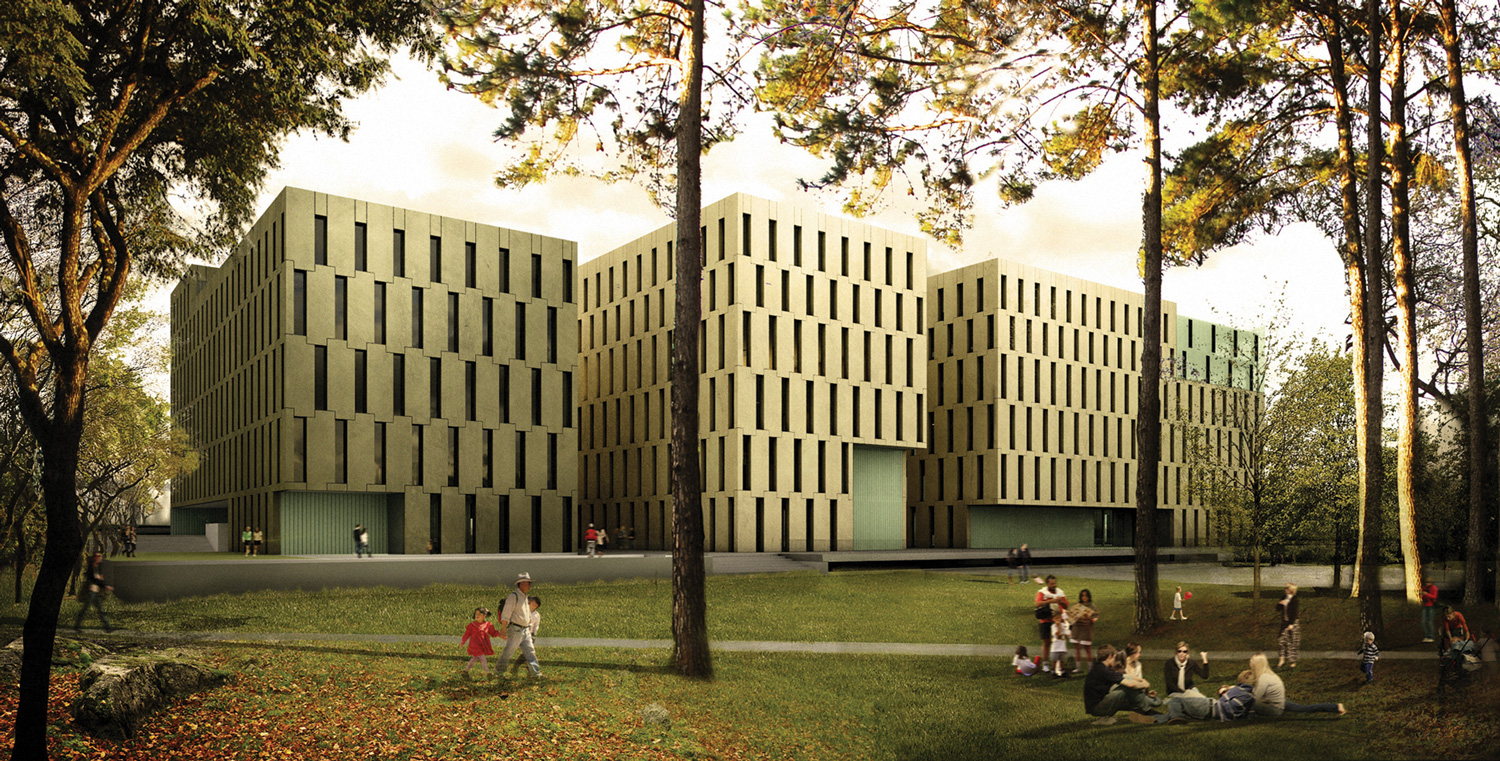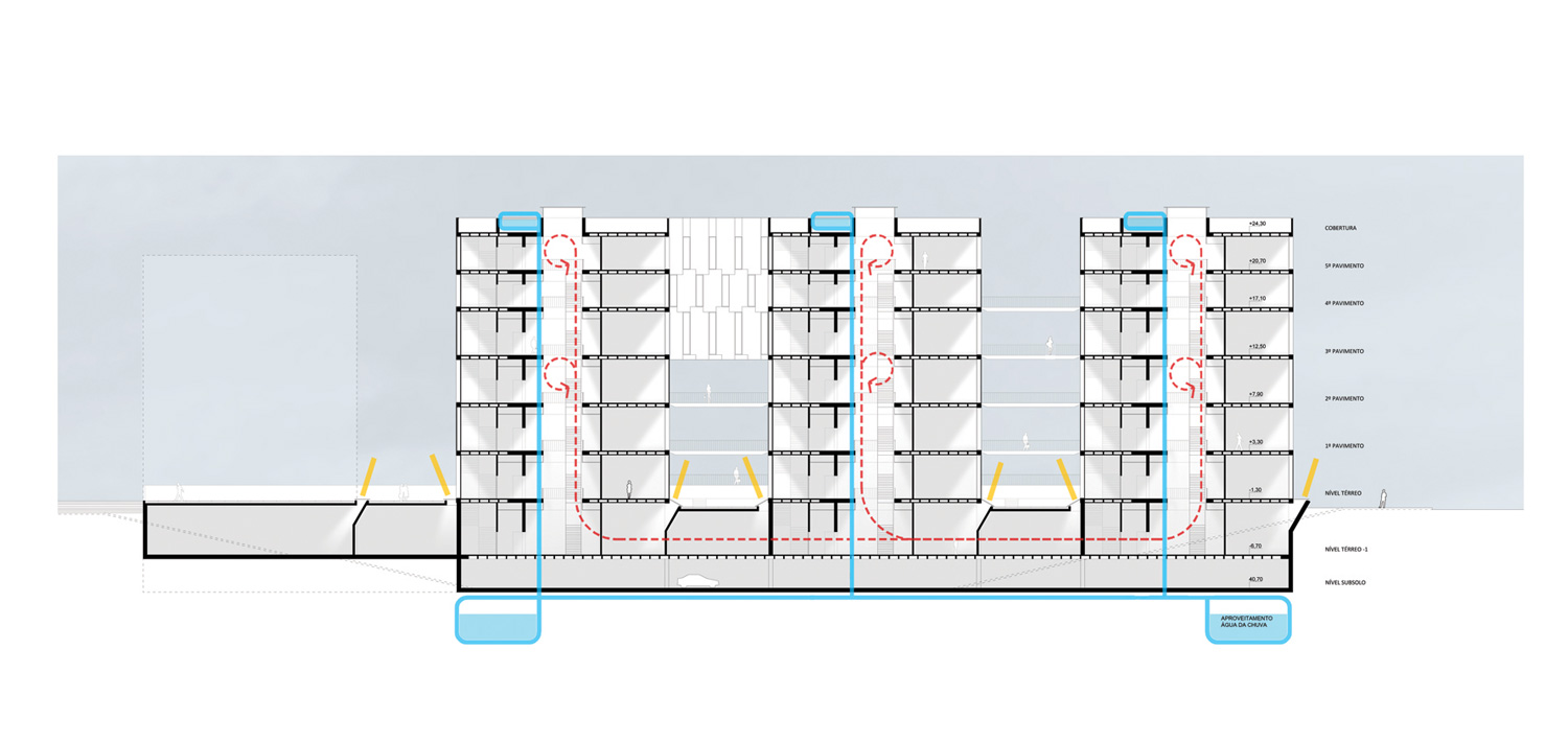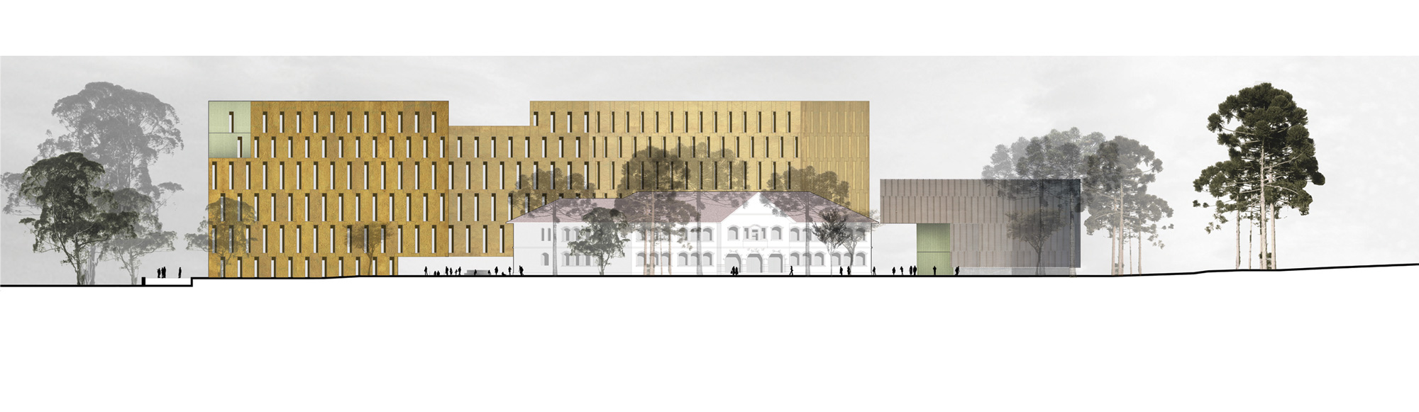 ☉ Campus Universitario Cabral da UFPR is a thrid prize proposal by Josep Ferrando Haraldo Hauer Alexandre Ruiz Thais Saboia and David Recio for UFPR designed in 2012. It is located in Curitiba Brazil in an urban setting. Its scale is large. Key material is concrete. Play-Time collaborated as visualizer. Concepts such as extension and modulation are explored.