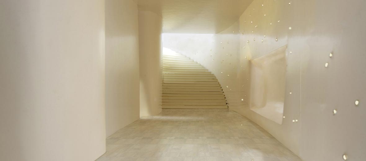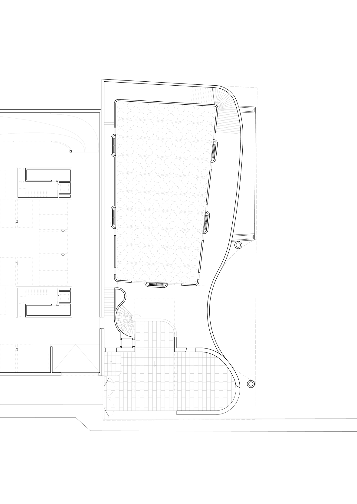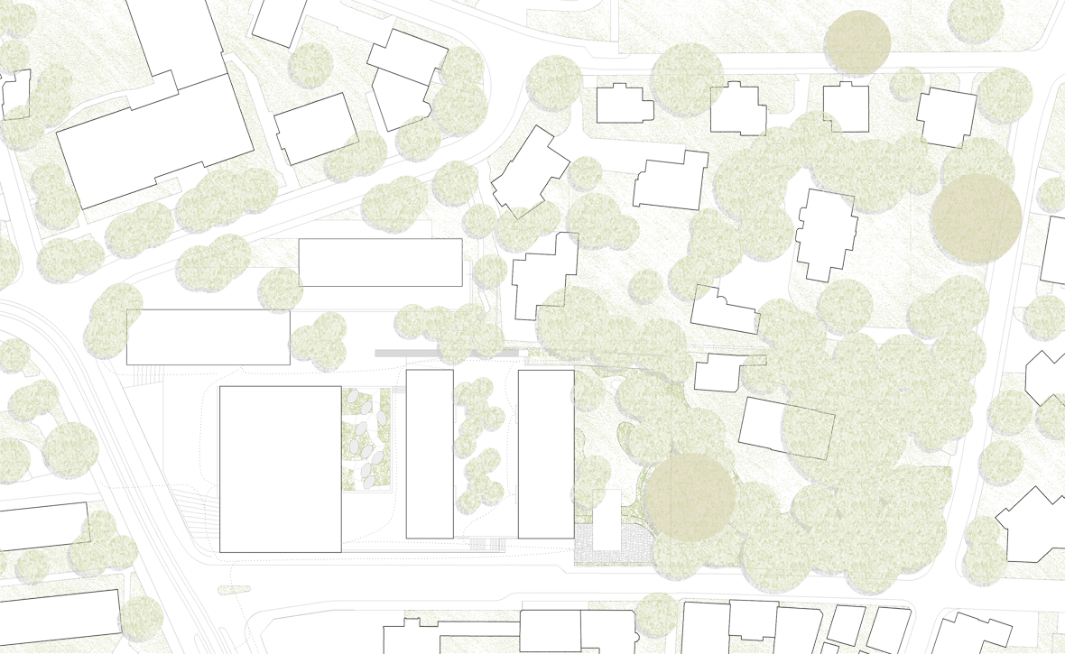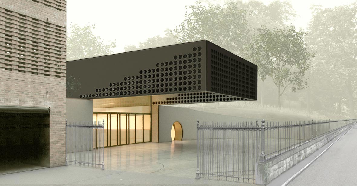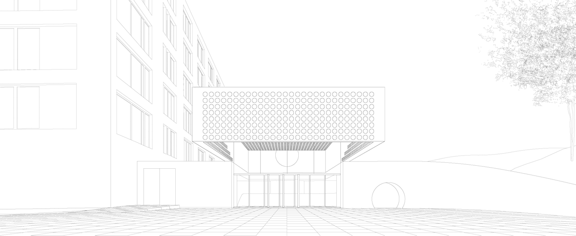 Der Neubau des Careum Auditorium liegt unter dem Erdreich. Zwei abstrakte Körper, das Vordach des Haupteingangs und das Volumen des Nebenzuganges, treten in der Parklandschaft kompositorisch zueinander in Beziehung und verweisen auf die unterirdische Anlage. Die präzise Setzung der beiden Zugänge ermöglicht eine ideale Anbindung des Auditoriums an den Careum Campus sowie an die umliegenden universitären Einrichtungen. Die bestehende Gartenmauer mit dem schmiedeeisernen Zaun wird als Begrenzung der Gartenanlage beibehalten. Durch das neue Gartentor wird der Aussenraum des Foyers betreten. Der grosszügige Platz wird hangseitig von einer geschwungenen Stützmauer gefasst. Hier trifft man sich, hier werden Gespräche geführt und im Sommer wird hier nach einer Veranstaltung zum Apéro geladen. Das kubisch gehaltene Vordach kragt über die Stützmauer hinaus und markiert zeichenhaft den Hauptzugang. Das Vordach ist mit isolierten Glasbausteinen durchsetzt. Die kontinuierliche Beleuchtung des Vordaches leitet ins Innere und führt zur Kanzel, welche einen Überblick über das Foyer bietet. Die lateral angeordnete, geschwungene Treppe führt ins Foyer hinunter. Der Bodenbelag des Platzes, ein Muschelkalk sowie die geschwungene Sichtbetonmauer finden ihre Fortsetzung im Foyer und leiten die Besucher zum multifunktionalen Auditorium. Das seitlich angeordnete Foyer endet in der geschwungenen Treppe des Nebenzugangs. Das Foyer wird als Bestandteil der gesamten Gartenanlage verstanden. Das Auditorium wird über mikroperforierte, transluzente, halbrunde Acrylglaskugeln belichtet. Diese Art der Beleuchtung lässt die abgehängte Decke leicht erscheinen und vermittelt den Eindruck, dass sich der Raum nach oben öffnet.