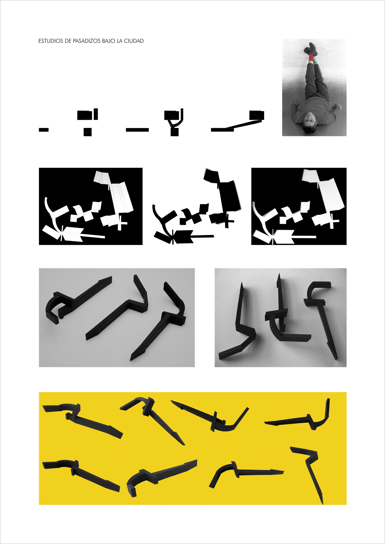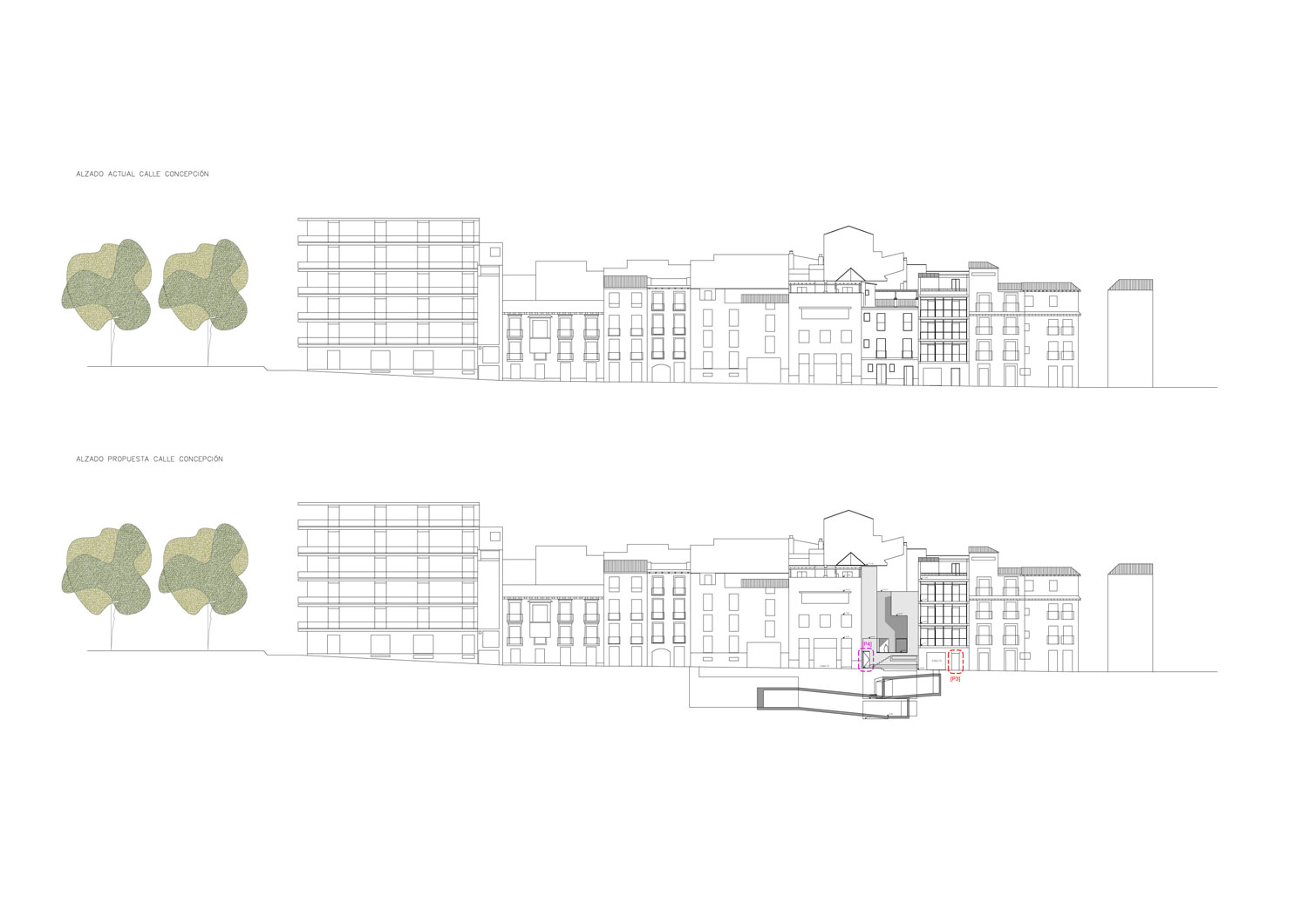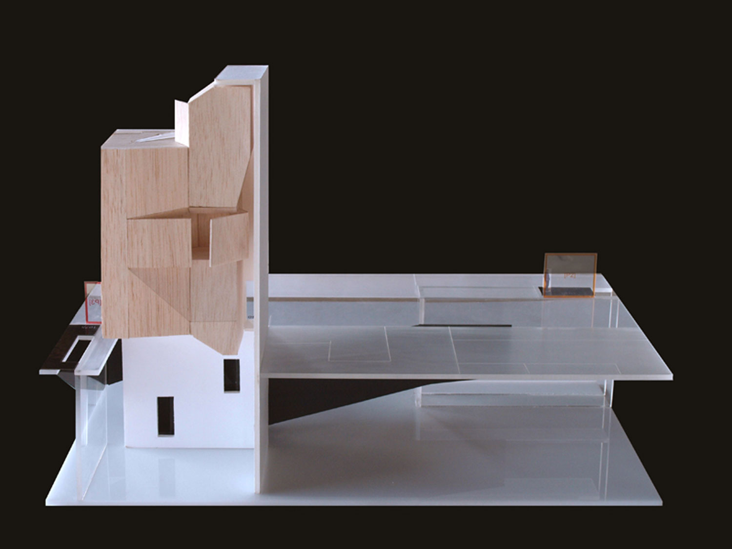 Para llevar a cabo esta idea se han elegido tres arquitecturas próximas existentes correspondientes a tres casas de épocas diferentes, una de finales del s.XIX, otra de 1920 de carácter historicista, y la última, de 1975, perteneciente a la etapa desarrollista. Cada una de ellas dispone de un espacio reservado en planta baja, y simbólicamente representan un umbral de tiempos que configuran una secuencia de entradas diferentes que nos transportan a una cuarta casa de nueva construcción. La comunicación entre ellas se produce a través de una serie de conexiones subterráneas, laberintos de lo absurdo que nos trasladan en el tiempo. Tres caminos que desembocan en un mismo lugar o en lugares diferentes y que sólo tienen sentido vistos en conjunto. Podemos acceder a una estancia del XIX para desembocar en un espacio del XXI o circular de adelante para atrás como si estuviéramos en un túnel del tiempo. Las cuatro casas elegidas hacen referencia a cuatro tiempos de la historia de la ciudad, cuatro puertas que nos conducen a cuatro espacios con características diferentes, como los cuatro naipes de una baraja.