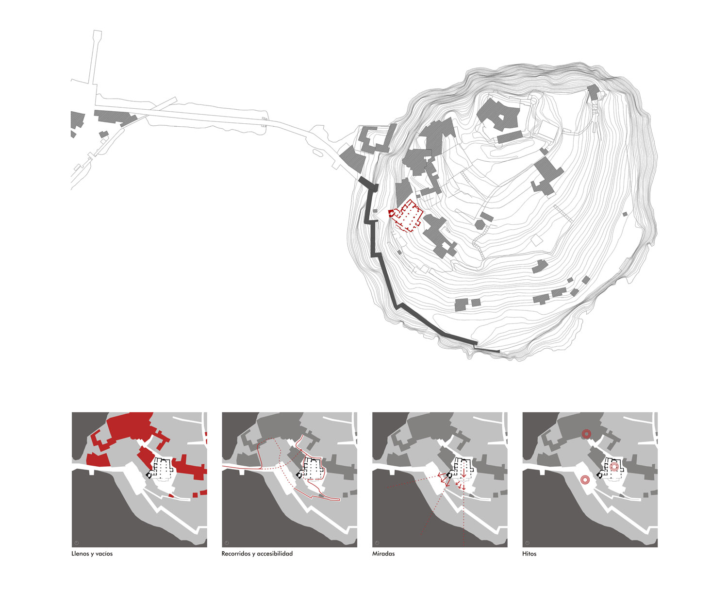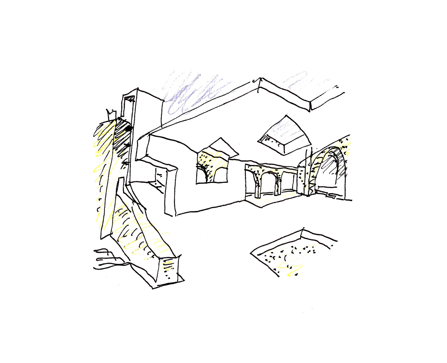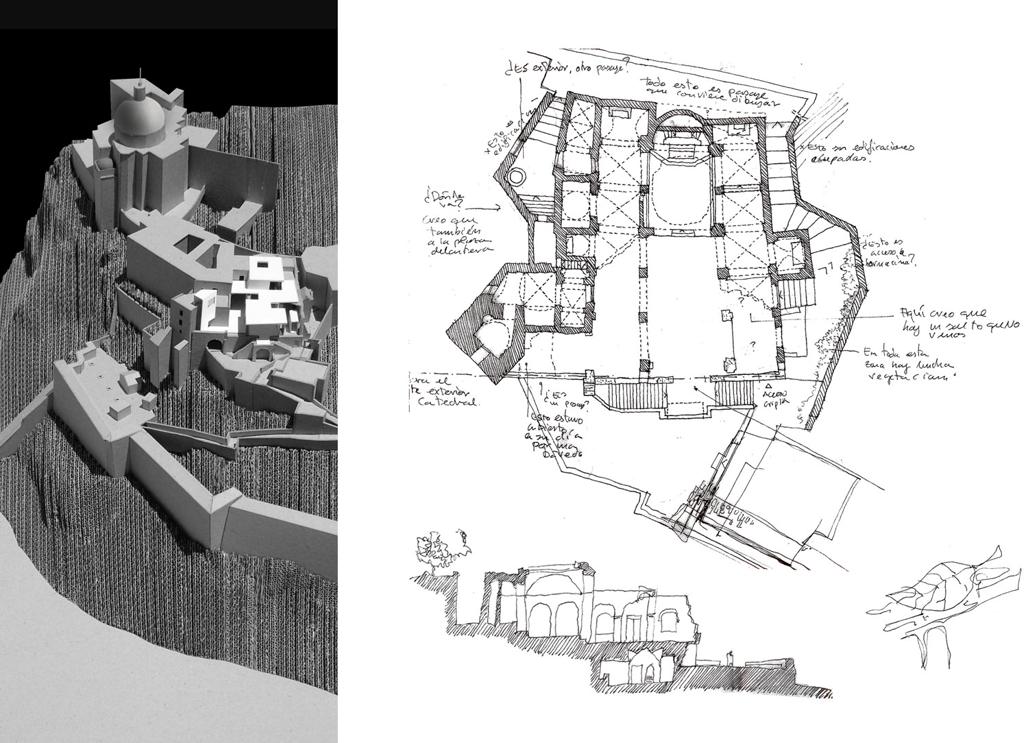 Las cicatrices que produce la historia enriquecen y dan una densidad distinta a las cosas haciendo desaparecer lo que no es esencial, y ésa es la belleza de la ruina porque también hace referencia a lo que ya no existe pero se percibe por su ausencia. Pretendemos atender a estas ausencias con igual intensidad que a lo existente, queremos dar tanta importancia a aquello que está presente y a las relaciones que el paisaje y la ruina han construido como a lo que se desvaneció con el tiempo. Proponemos la reconfiguración espacial solicitada de la catedral como una materialidad y una luz, unos recorridos y unas relaciones a partir de los indicios que nos permiten evocar una atmósfera que debió existir. Podemos rastrear las ausencias, descubrir las pistas que evocan aquello que debió ser y trabajar a partir de ellas reconstruyendo miradas y vínculos.