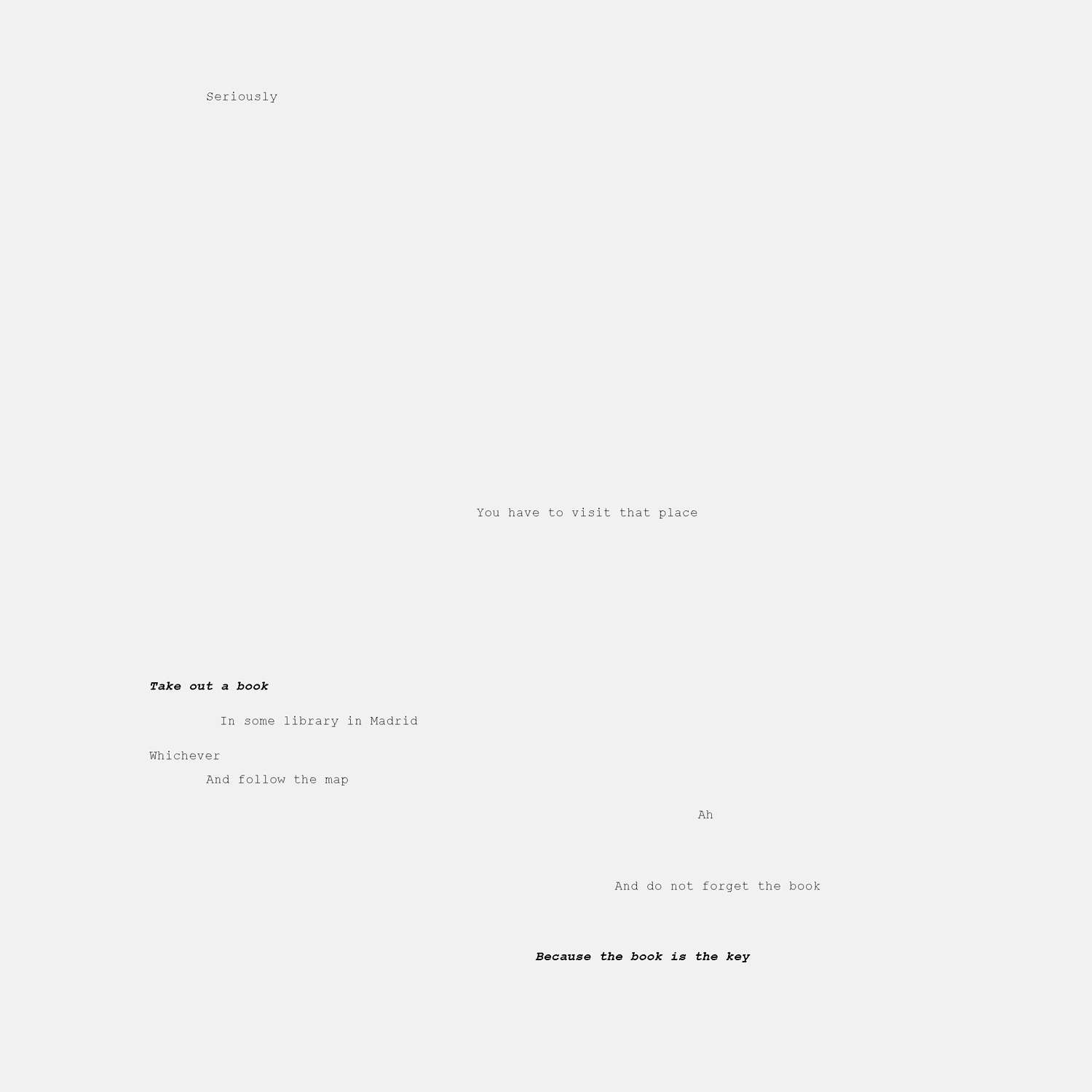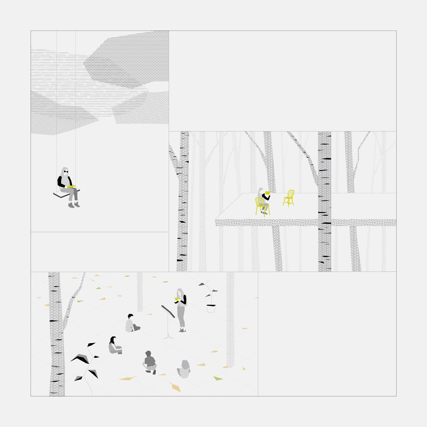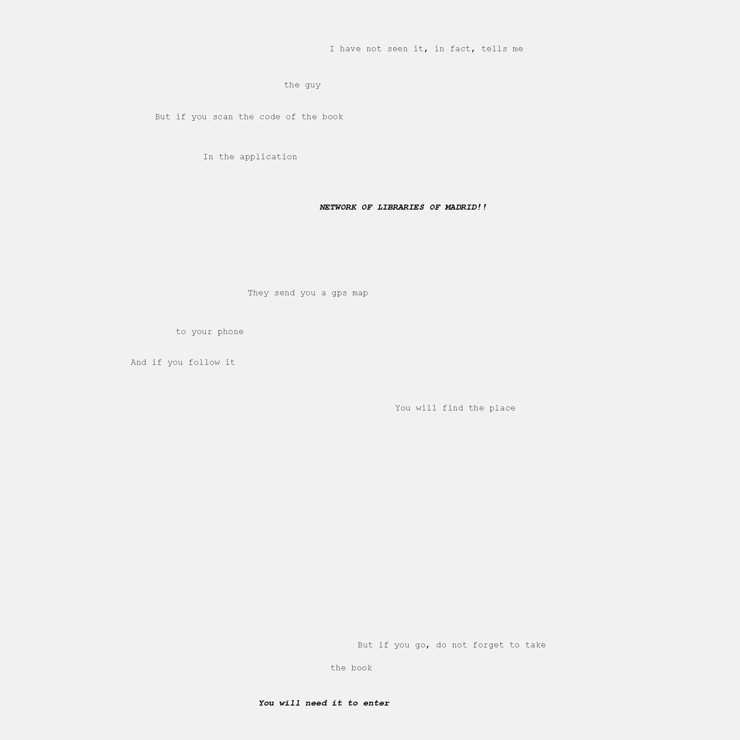 Este proyecto surge en el contexto de un concurso arquitectónico convocado por el Ayuntamiento de Madrid para crear tres nuevas bibliotecas – en tres barrios diferentes que completen la red de bibliotecas de la ciudad. Nosotros proponemos actuar sobre la red de bibliotecas en lugar de hacerlo sobre lugares aislados. Actuar sobre la red como si de un organismo indivisible se tratara, en lugar de crear bibliotecas aisladas. Consolidar la red. Reinventarla. Una serie de espacios que se complementan entre sí frente a una suma de espacios repetidos. ¿Es exactamente otra biblioteca lo que necesita la red de bibliotecas de Madrid en el barrio de las Tablas?