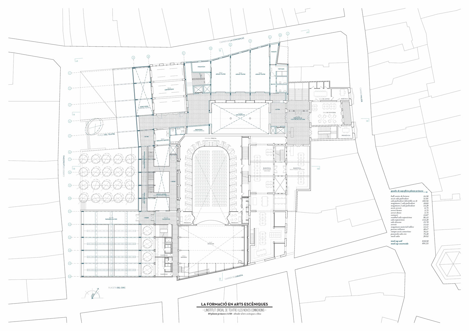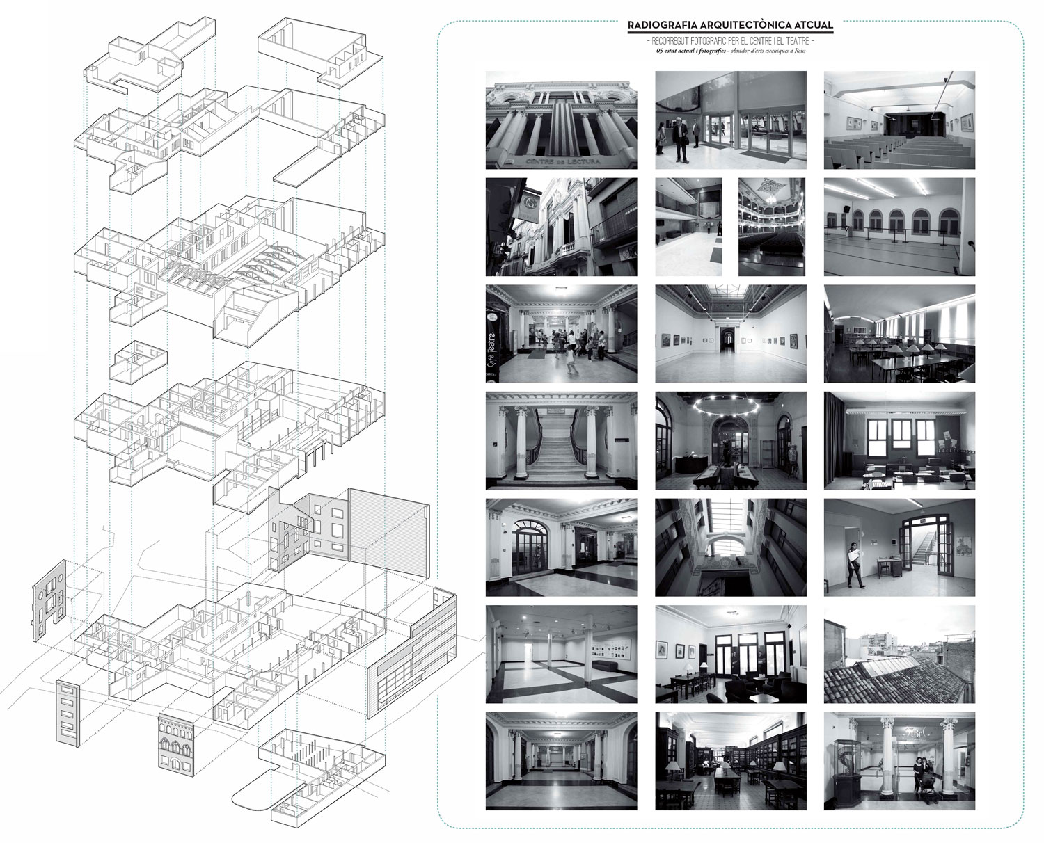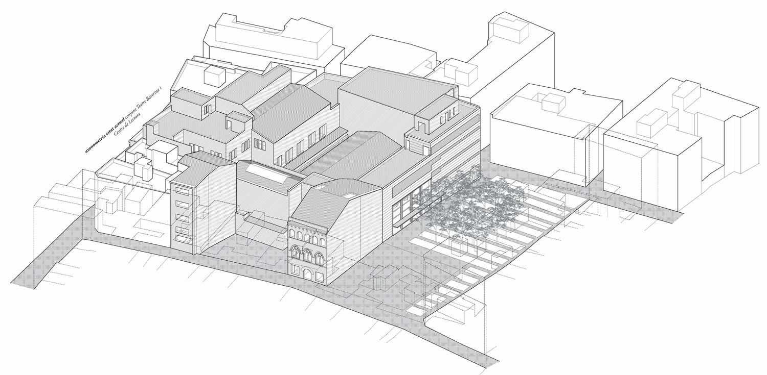 Reus, a city of 106.000 inhabitants in the south of Catalonia hosts one of the most potent performing arts network. The ‘Centre de Lectura'(an important athenaeum and performing arts school) and the Bartrina Theatre form a powerful cultural block in the center of the old city. This master thesis attempts to convert this complex into a new cultural and urban highlight through the rehabilitation and expansion of the existing facilities and redefining its relationship with the street and the Theatre Square. The city council master plan conceives a four storey volume for the new facilities in the northern part of the square, attached to the existing party wall. The project reverses the placement of this volume in the Theater square, deciding to occupy the southern part of it in order to originate a lower body to humanize the scale of the square and also to connect the existing dressing and changing rooms with the new circus rehearsal hall. The project features three main concepts: reorganize and optimize the cultural and educational agenda, create a new structure that comes from stretching the lines of the existing center structure, and the willing to control the radiation, light and ventilation of the new interior halls and the gallery facade to reduce the energetic demand in the common spaces.