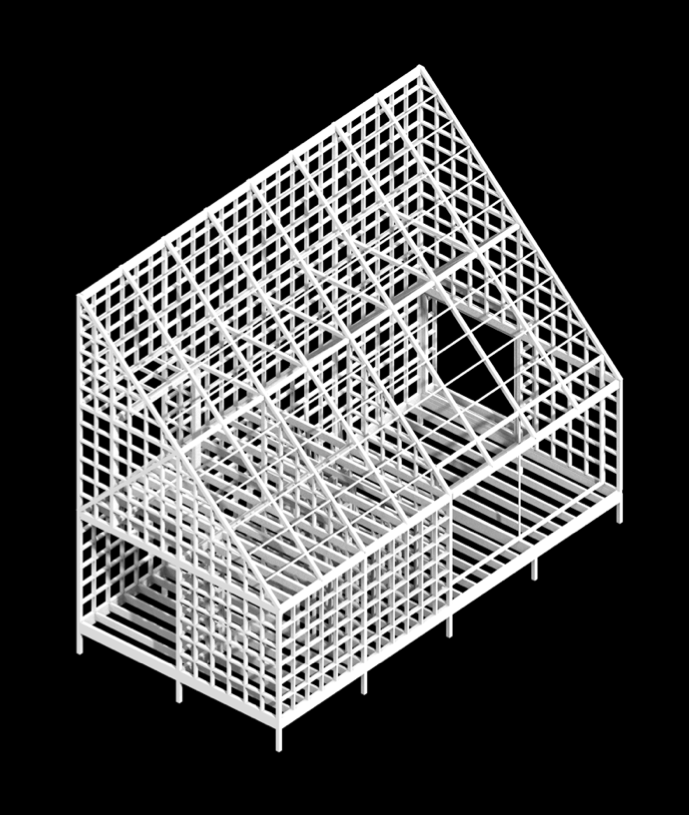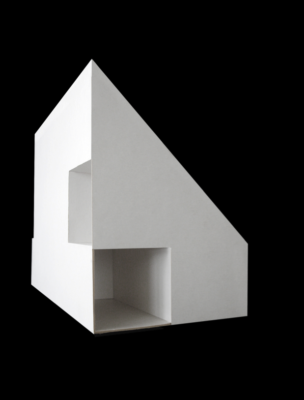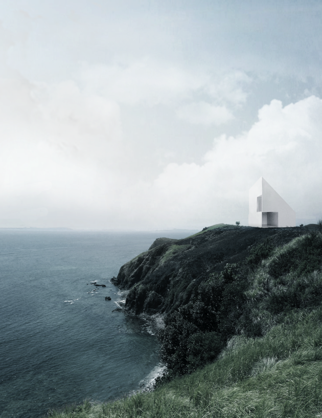 Los recintos han sido definidos según el tiempo de permanencia en ellos, mediante un módulo de 3x3m para organizar la planta y las fachadas haciéndolas calzar con una proporción universal. Este módulo de 3x3m servirá además de patrón para el diseño estructural y de fachada. Se entiende una primera etapa de «limpieza»,en la que el pescador se deshace de las redes, y purifica para ingresar a la vivienda, en su interior el espacio más importante es la cocina, siendo éste el punto de reunión de toda la familia. Las elevaciones son resultado del módulo de diseño de 3x3m de la planta, así, se genera un nuevo módulo esta vez tridimensional, 3x3x3m. Todas las fachadas han sido diseñadas mediante esta medida. Este encargo no posee materialidad, el objetivo es crear una vivienda proyectual, progresiva en la que el pescador pinte su casa del color apropiado para la navegación ya que es muy frecuente en las costas del sur que los pescadores usen sus casas y las de otros como puntos de referencia en el mar, así, las viviendas pueden adquirir diferentes colores o brillos dependiendo de lo que simbolicen. La fachada, además genera 3 puntos de vista hacia el mar, en el estar, en el comedor y cocina, y en la pieza principal, así, el pescador jamás se desliga de la vista hacia el horizonte. El objetivo es convertir la casa en una herramienta mas para el pescador, tal cual él la vive, tan imprescindible como la red, el bote, o los remos.