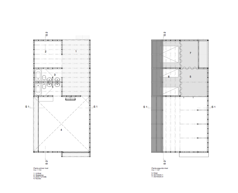 ☉ Centinela is a proposal by Felipe Grallert designed in 2007. It is located in Corral Chile in a seaside setting. Its scale is small with a surface of 100 sqm. Key material is wood. Concepts such as sloped roof and lightweight structure are explored.