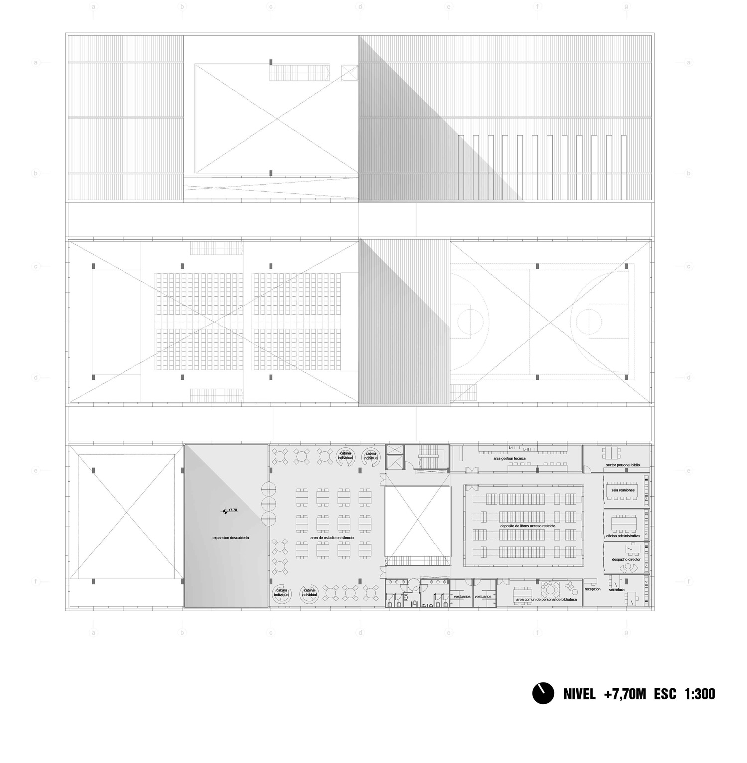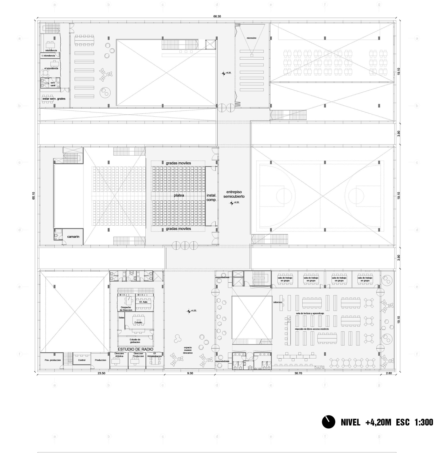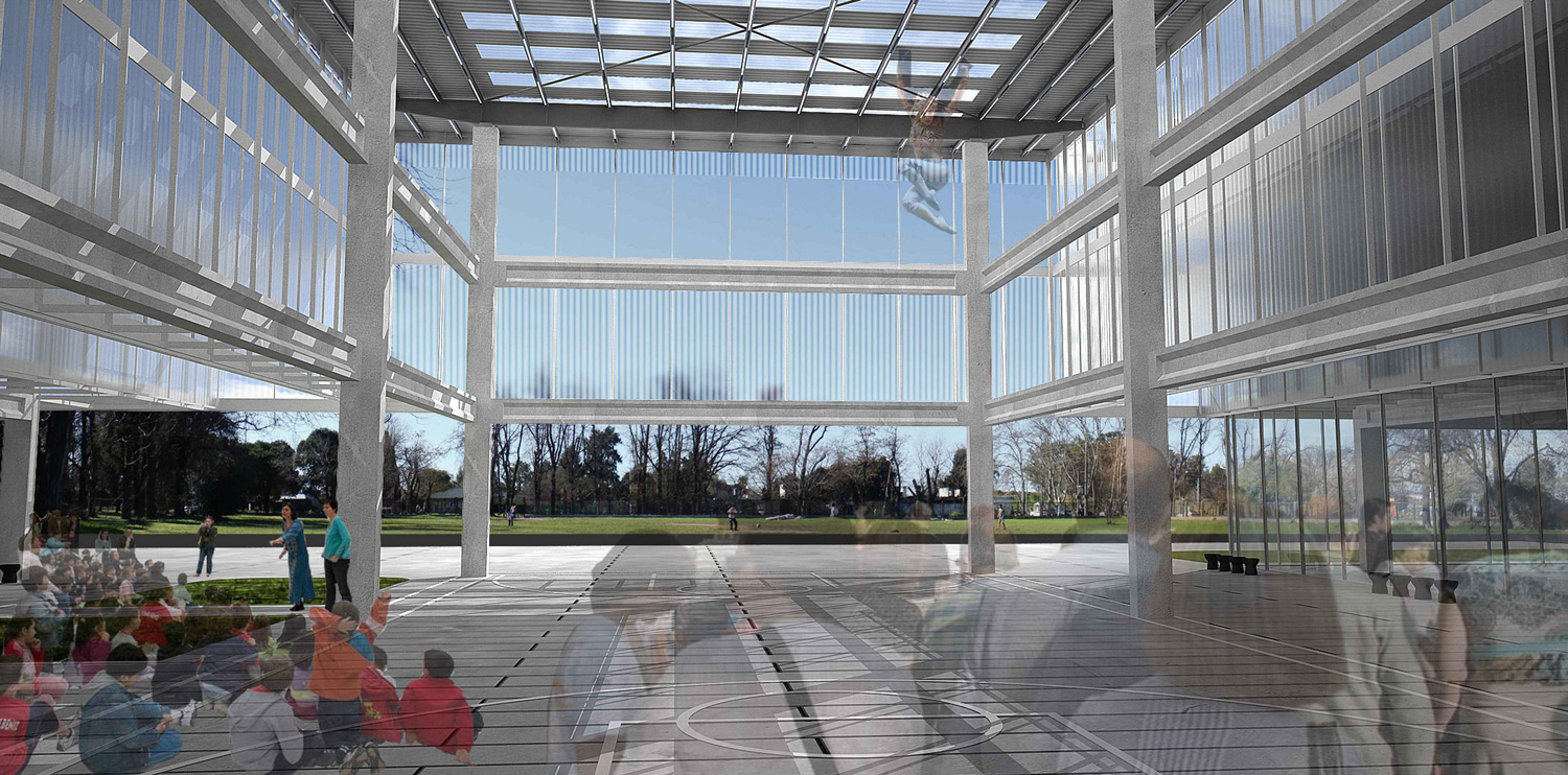 Frente a la idea del espacio programado para cada función se defiende la idea de un espacio “desprogramado” susceptible de aceptar acontecimientos varios. La versatilidad de los ámbitos habitados, está directamente asociado a la cantidad de espacio disponible. Nuestra búsqueda fue generar más volumen edilicio construido, más espacio indeterminado, más aire, con el mismo presupuesto. Potenciando una lógica en la que a una mayor cantidad de espacio se asocia una mejor calidad de vida. Estos indeterminados se transformarán en los lugares de posibles apropiaciones, eventos y programación del complejo. Asimismo la técnica constructiva, permite completar con programa las naves vacías en caso de que el comitente así lo requiera. El uso apropiado de estas lógicas constructivas permite economías varias y posibilita una etapabilidad múltiple al desarrollo del proyecto. La adaptación del edificio para nuevas intervenciones y su reconversión son posibles en cualquier momento.