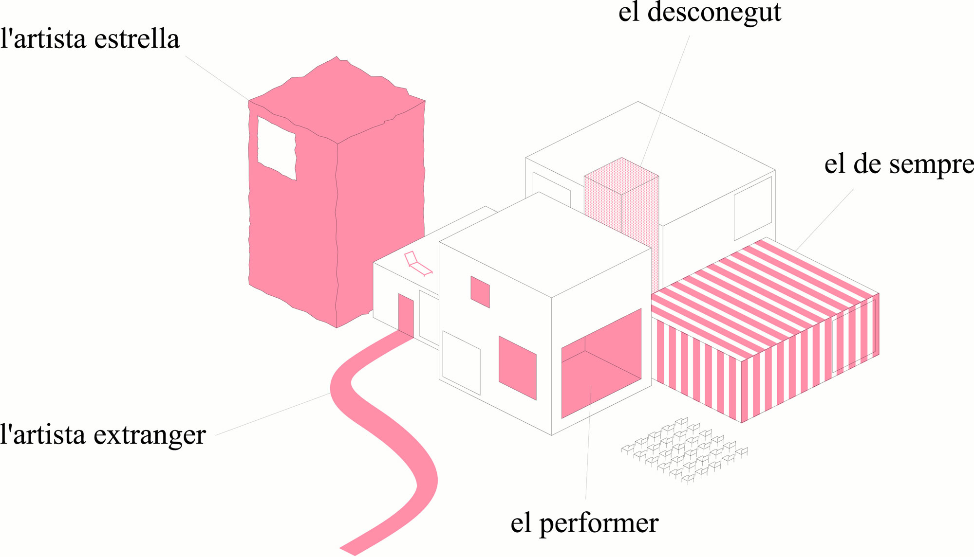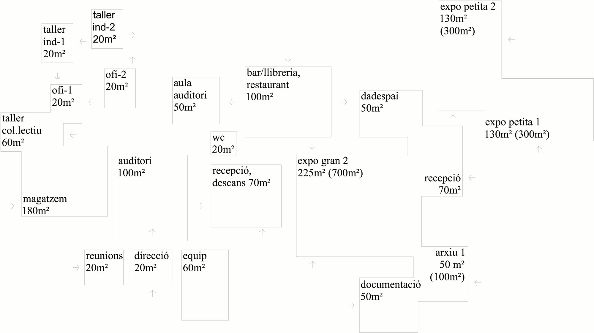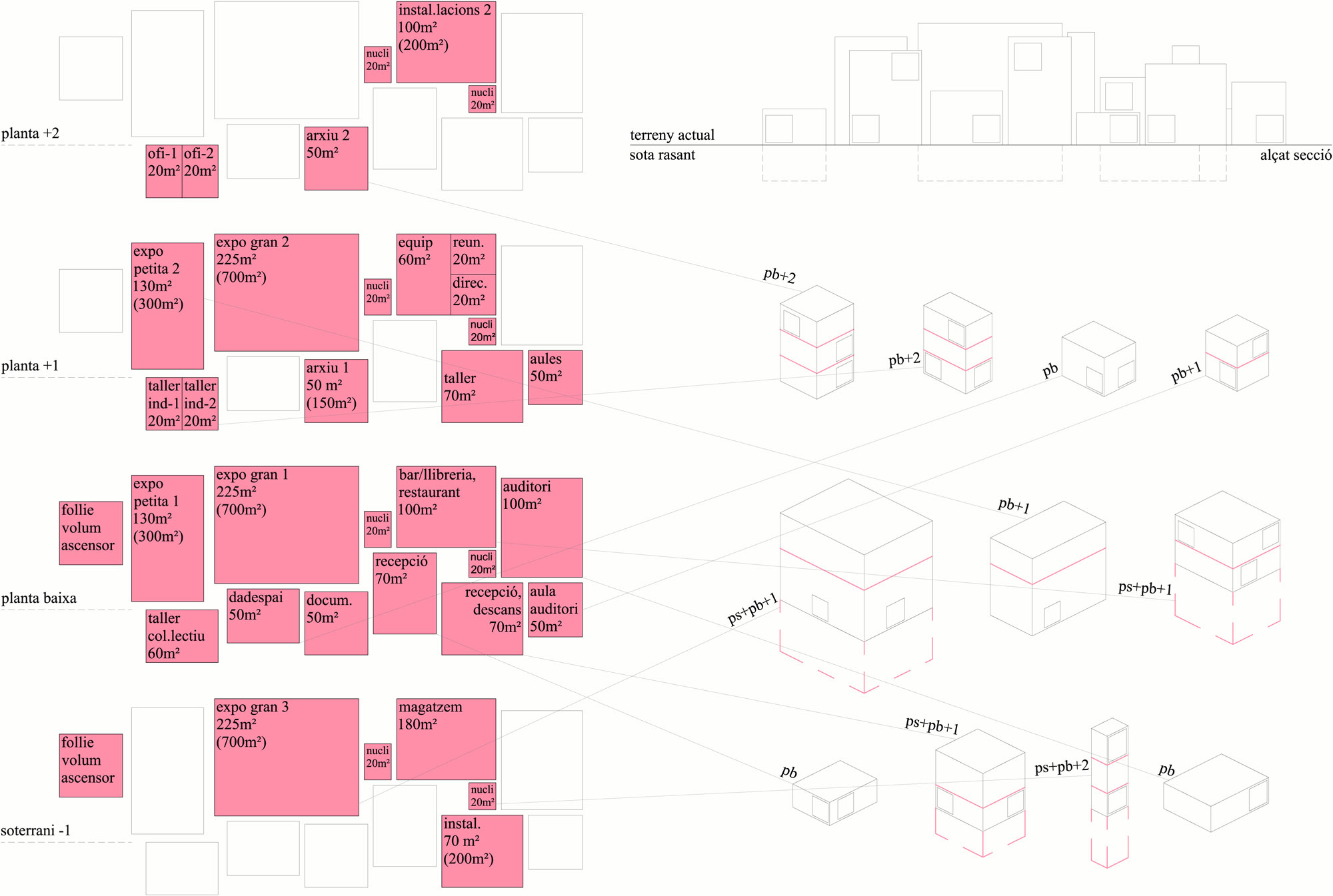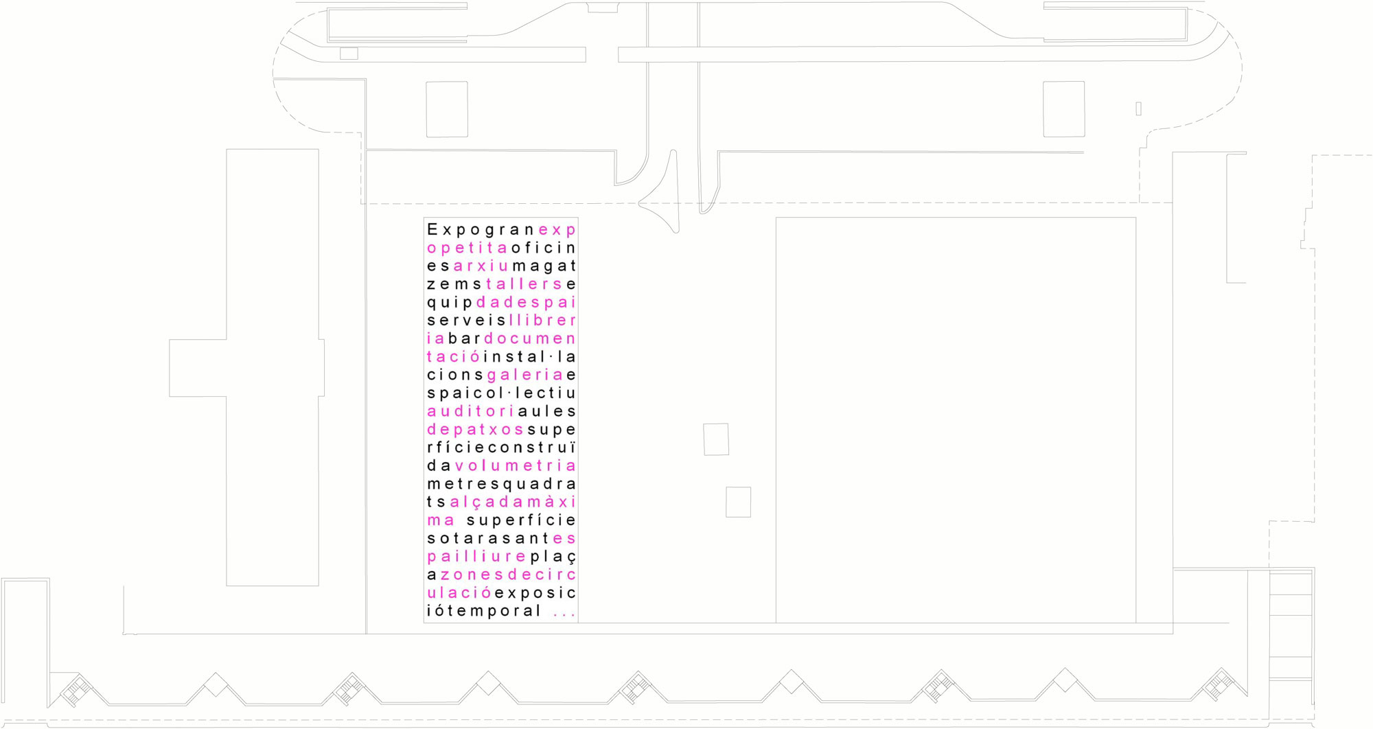En su primera etapa, El Bòlit ha funcionado como un centro sin edificio ni espacio de exposiciones permanente. El modelo se ha basado hasta ahora en la apropiación de espacios existentes o la utilización de infraestructuras temporales en la ciudad de Girona. Un centro de arte contemporáneo sin sede que requiere, dado su crecimiento, un espacio de representación. Adoptamos un modelo basado en la economía de medios, la inestabilidad y la catalización de actividades, de manera que la propuesta intente juntar dos elementos aparentemente contradictorios: la presencia física en el lugar y la temporalidad o adaptación a las cambiantes necesidades del momento. Habrá edificio, pero distará de ser fijo e inalterable. De esta manera se disecciona el programa, entendiendo una unidad mínima de funcionamiento, y se paquetiza el resto en unidades autónomas y flexibles, capaces de aportar un modelo de crecimiento controlado. A lo largo del tiempo diferentes agentes estarán implicados en las diferentes formalizaciones del conjunto. Aparace así el factor tiempo como controlador del crecimiento, y el concepto final del edificio busca la participación, en concordancia con la filosofía del Bòlit, que se define a sí mismo como “centro dinámico y activo, que ofrece actividades integradas y vinculadas, talleres, ciclos de conferencias, intervenciones urbanas y búsqueda de la participación de la sociedad civil desde sus inicios”.