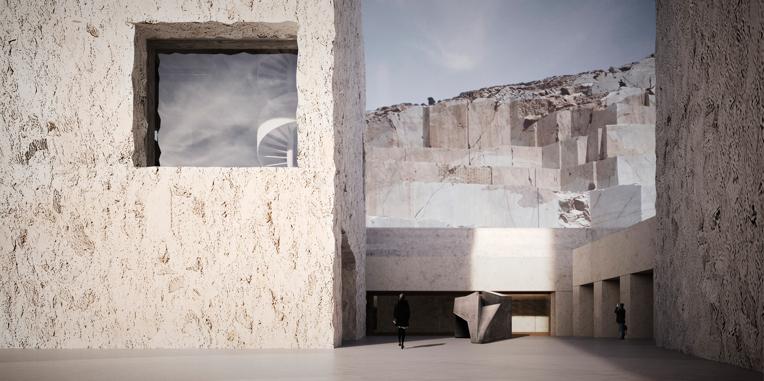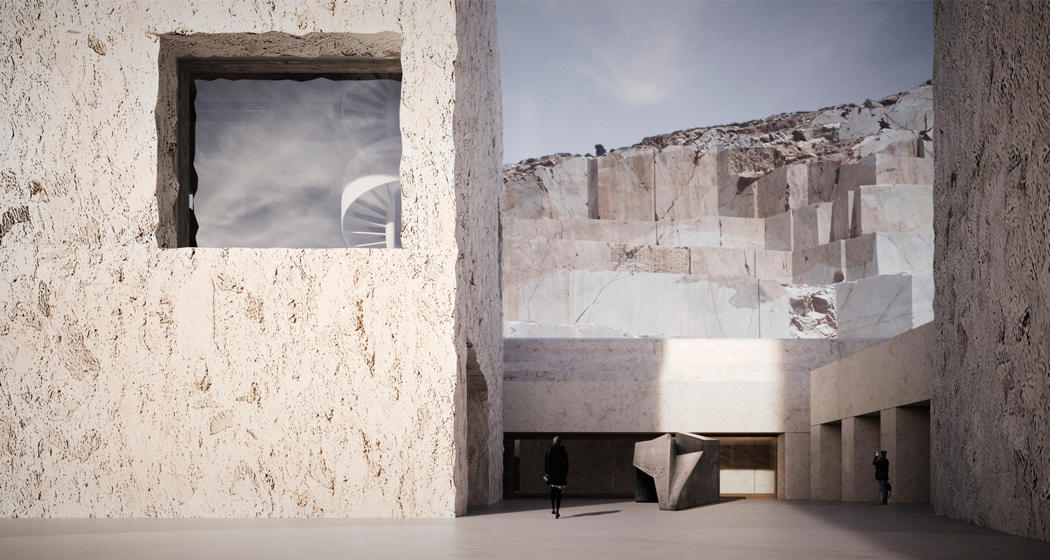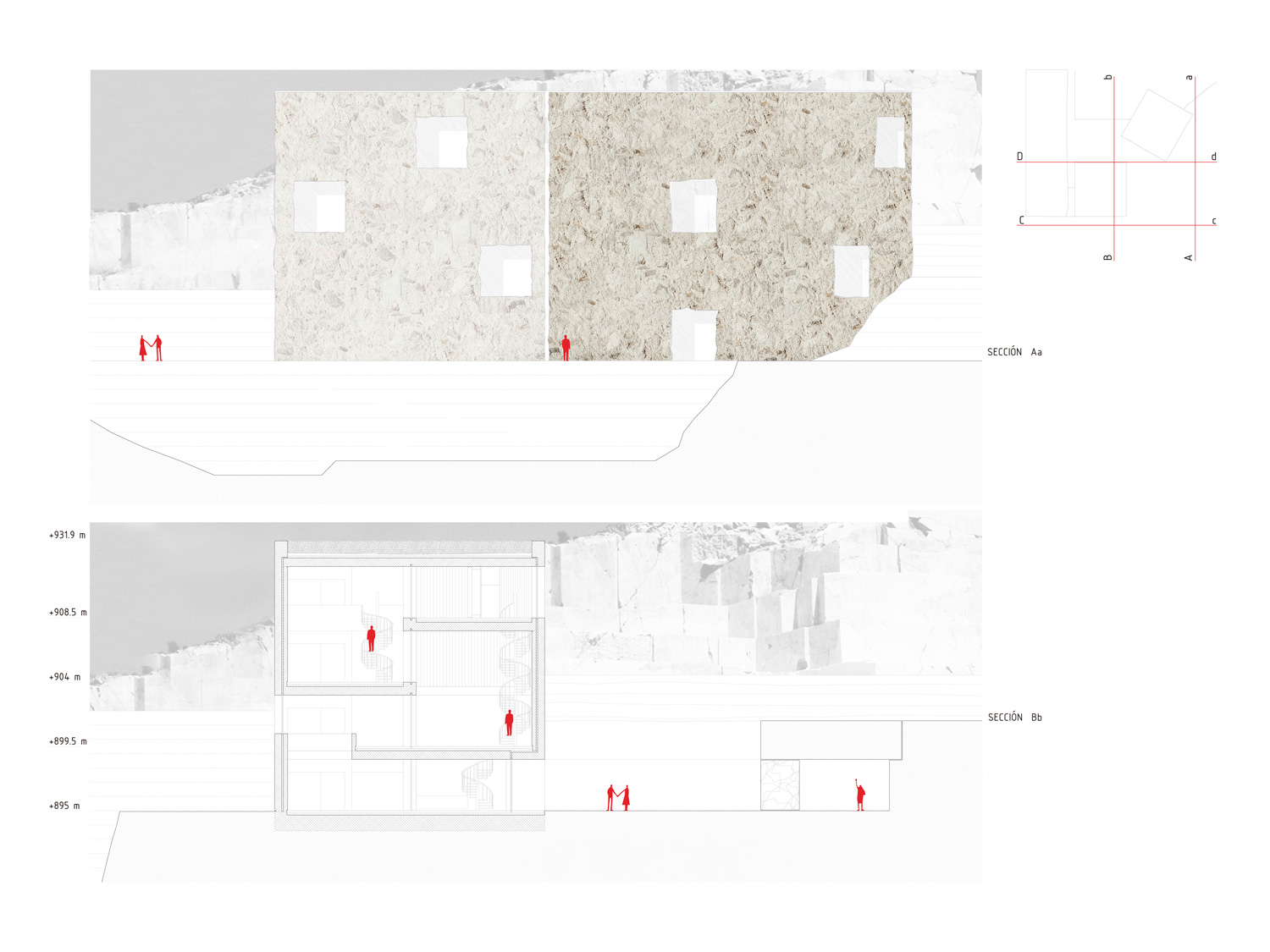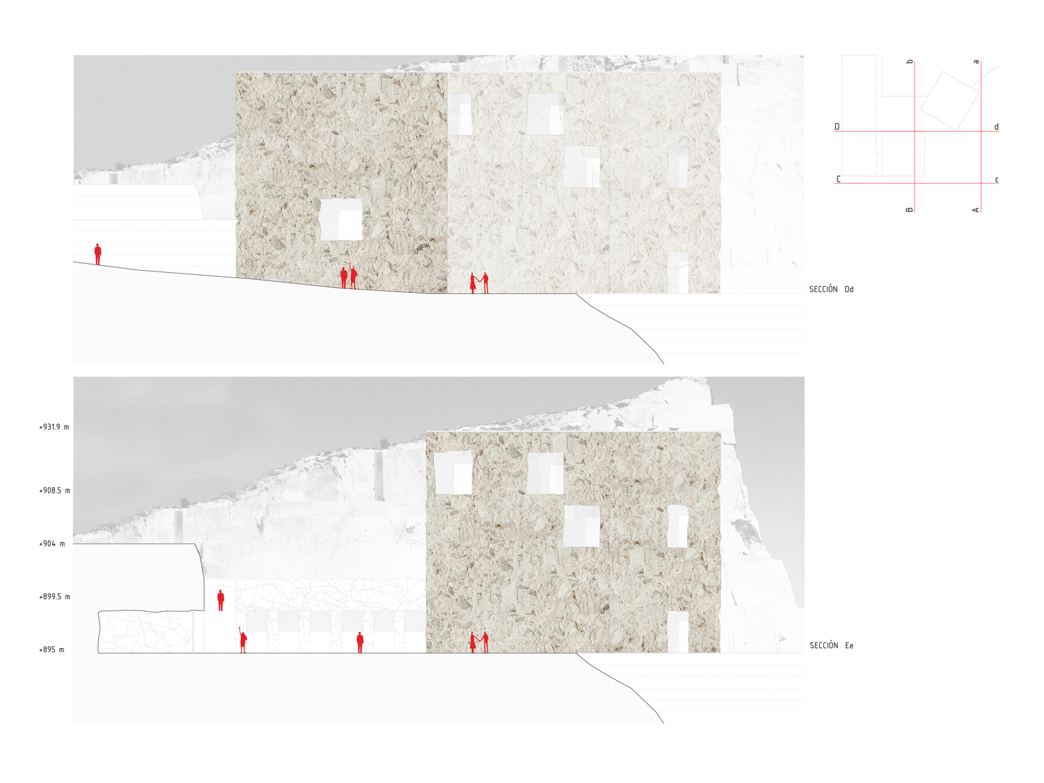 ☉ Centro de Interpretación del Mármol y Alojamientos temporales para artistas is an academic project by Fernando Royo for ETSA Navarra designed in 2015. It is located in Almería Spain in a quarry setting. Its scale is medium. Key material is stone. Concepts such as monolith and opening are explored.