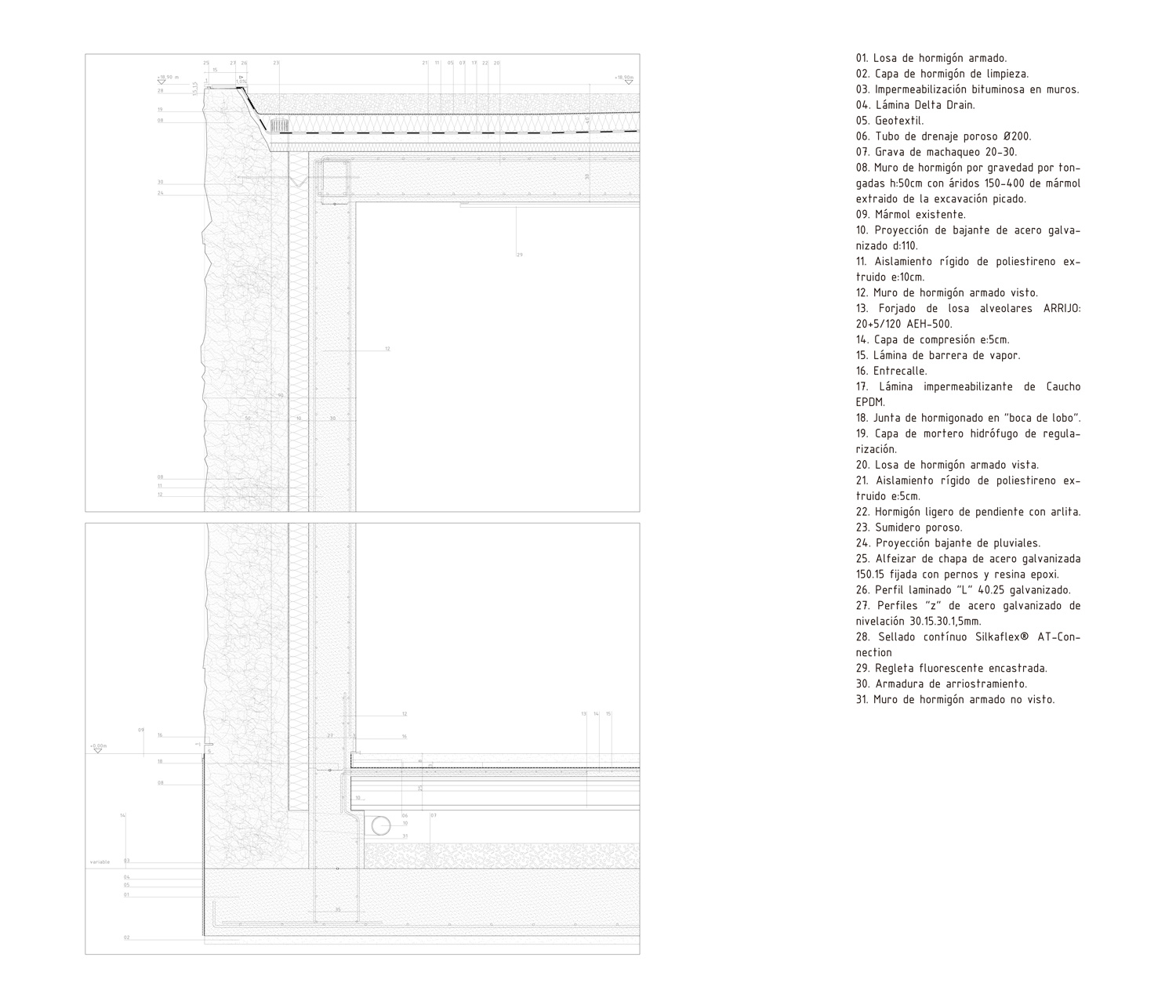 Se ha elegido una situación extrema por su belleza. Un paisaje extraordinario sobre el que el hombre ya ha actuado con antelación generando un mundo mágico, casi telúrico, que impresiona por su fuerza espacial y material. Trabajaremos en unas canteras de mármol Macael localizadas en la Sierra de Almería, al sur de España, en unas montañas rocosas que se eleva con gran altura sobre valles y poblaciones blancas de extraordinaria belleza. Los cortes verticales que durante estos años se han realizado para la extracción de las tablas de mármol, han generado planos verticales que se elevan sobre un gran corte horizontal también de mármol. Estos diedros crean un “espacio vaciado”, de naturaleza mágica, que suspendidos entre montañas son de una intensidad sobrecogedora. El proyecto se centrará básicamente en los dos temas ya anunciados. Paisaje y tectonicidad. El hecho constructivo y la materialidad son en este caso aspectos fundamentales fuertemente implicados en el concepto de paisaje, un paisaje que, ya ha sido manipulado. Espacio, relación interior-exterior, excavación o superposición, pesadez o ligereza, mímesis o contraste, materialidad… todos ellos son conceptos que han de surgir en el devenir del curso.