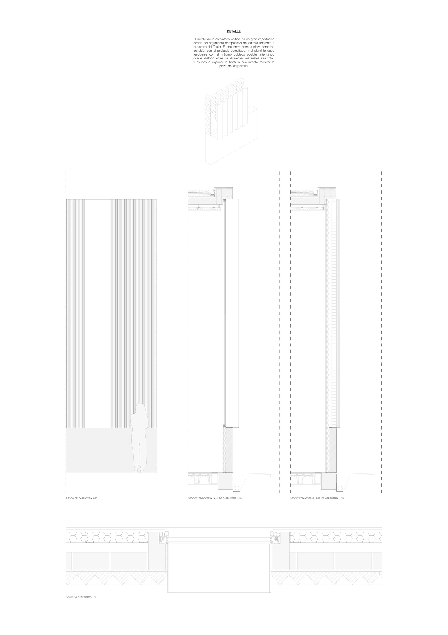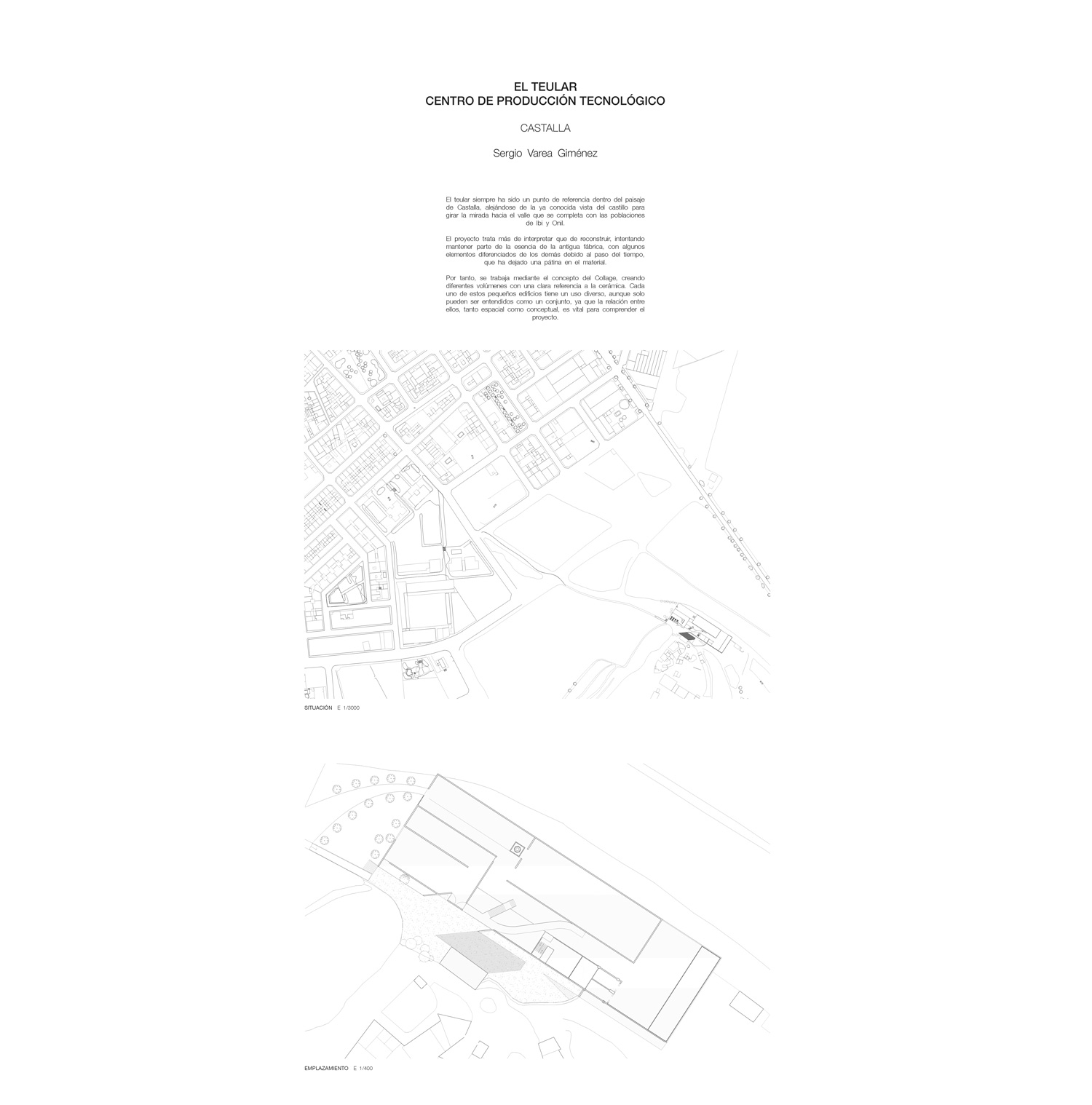 El teular siempre ha sido un punto de referencia dentro del paisaje de Castalla, alejándose de la ya conocida vista del castillo para girar la mirada hacia el valle que se completa con las poblaciones de Ibi y Onil. El proyecto trata más de interpretar que de reconstruir, intentando mantener parte de la esencia de la antigua fábrica, con algunos elementos diferenciados de los demás debido al paso del tiempo, que ha dejado una pátina en el material. Por tanto, se trabaja mediante el concepto del Collage, creando diferentes volúmenes con una clara referencia a la cerámica. Cada uno de estos pequeños edificios tiene un uso diverso, aunque solo pueden ser entendidos como un conjunto, ya que la relación entre ellos, tanto espacial como conceptual, es vital para comprender el proyecto.