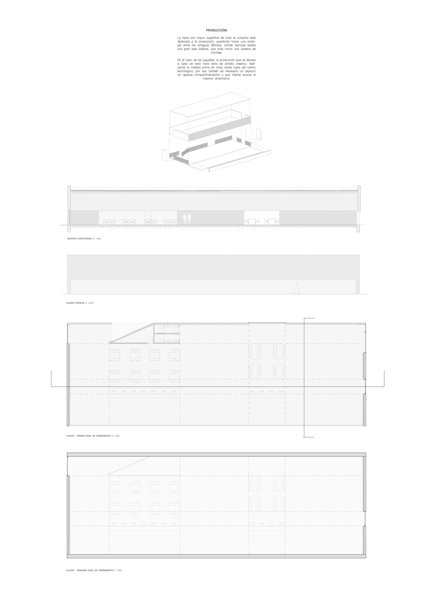☉ Centro de Producción Tecnológica en "El Teular" is an academic project by Sergio Varea for ETSA Valencia designed in 2019. It is located in Castalla Spain in a countryside setting. Its scale is large with a surface of 10.000 sqm. Key materials are concrete brick and wood.