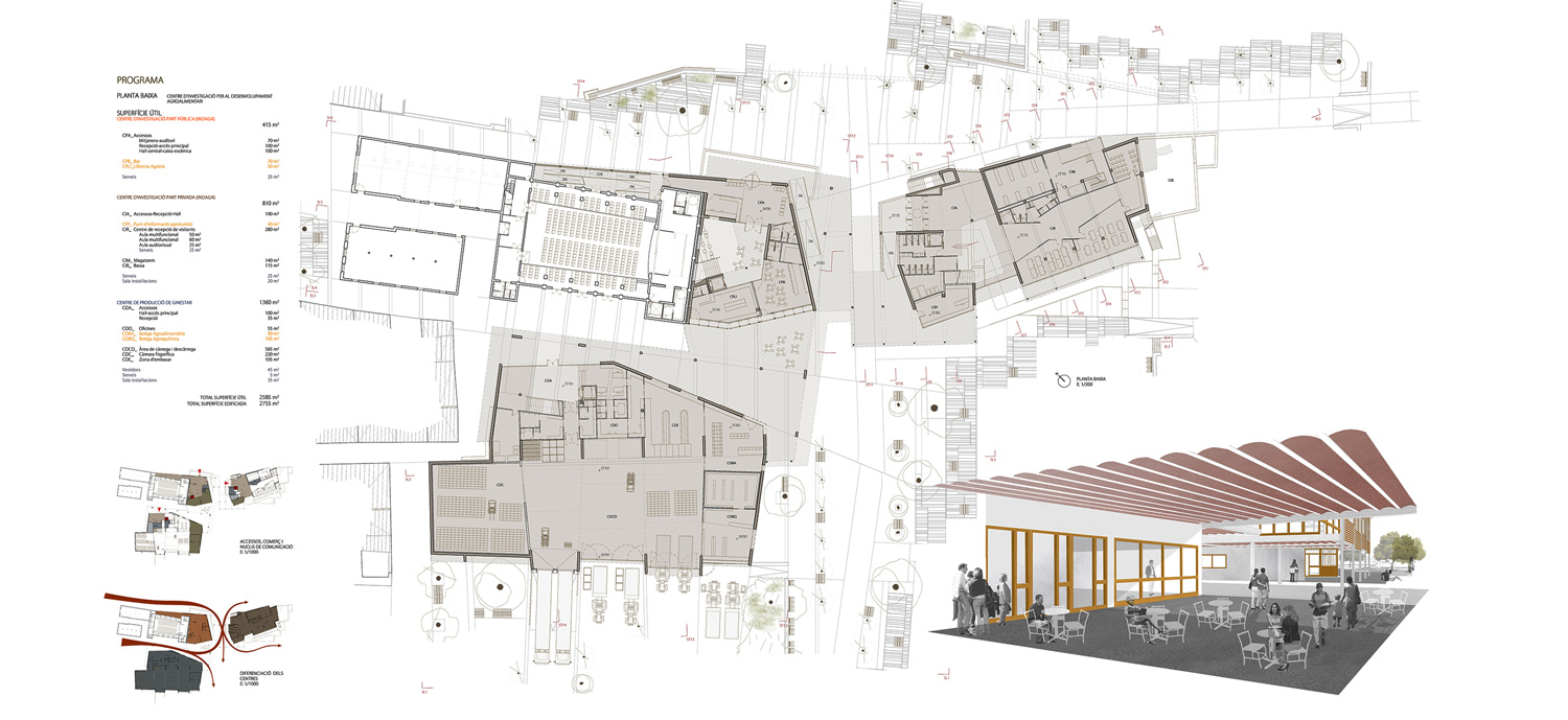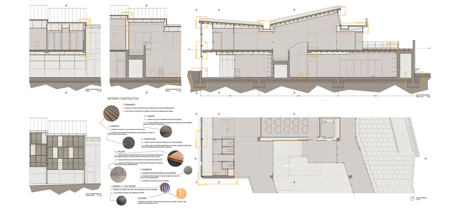 ☉ Centro IndAGA is an academic project by NUA arquitectures for ETSA Barcelona designed in 2010. It is located in Ginestar Spain in an outskirt setting. Its scale is medium with a surface of 2.755 sqm. Key materials are ceramic and concrete. Concepts such as party wall broken volume and sloped roof are explored.