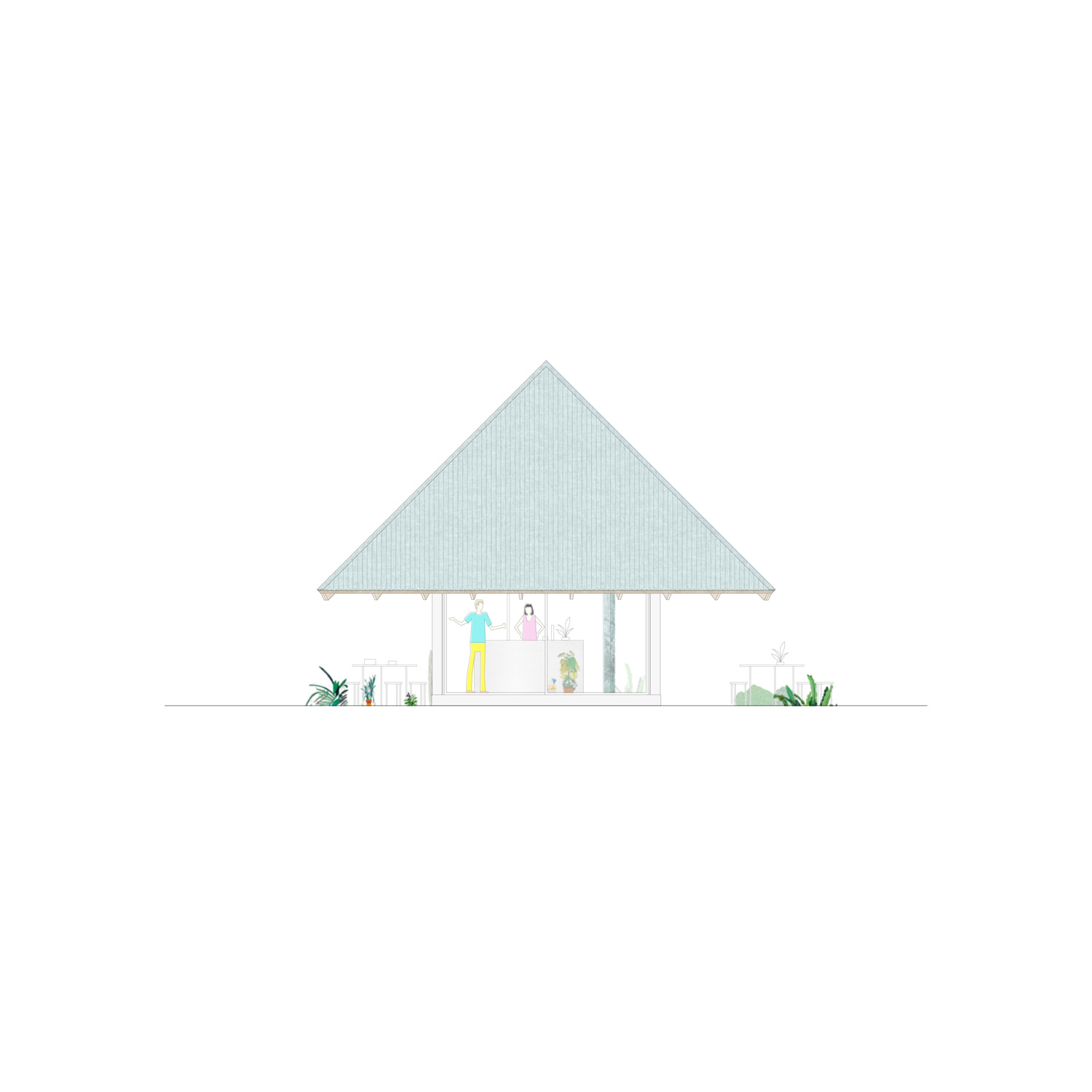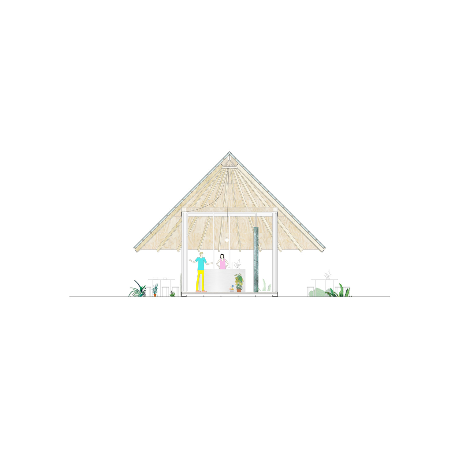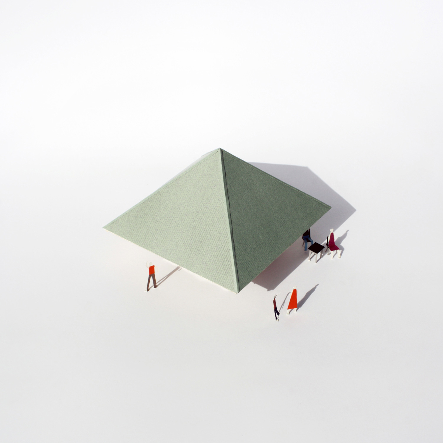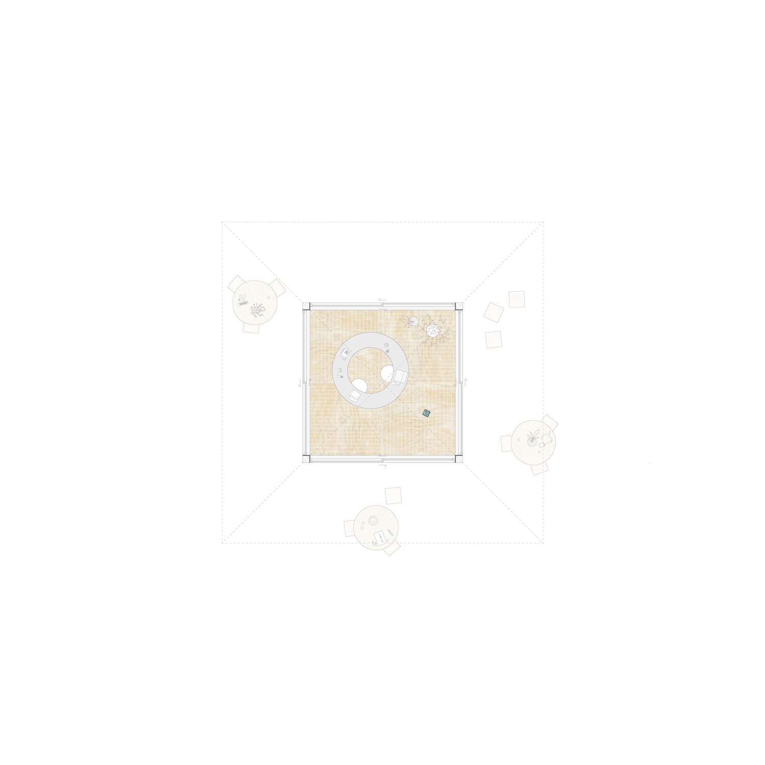 The ‘little kiosk artistically considered’ lives in limbo: it is an irrelevant monument. It is as much a kiosk as it is a proud piece of architecture. The ‘kiosk’ has a grand timber roof which recalls the sharp lines of Prairie architecture and underlines the vistas to the park and Lake Michigan. Under the roof, a glass box surprises with its verticality. It hosts all kinds of cultural and commercial programs, as well as a marble column. The ‘kiosk’ is made of familiar elements assembled in an unorthodox manner. It invites the visitor to reconsider its relationship to the city and to architecture as a necessarily referential discipline. Its architectural language is clear and honest: anyone can dismount and remount it, both literally and mentally, but its poetry lies in the fact that it never truly belongs. Like a child lost in a city of adults.