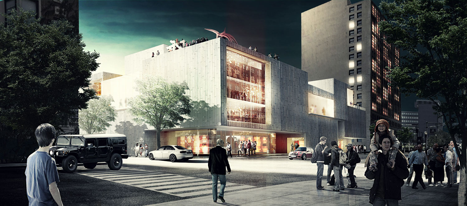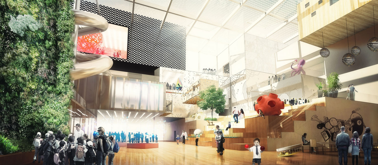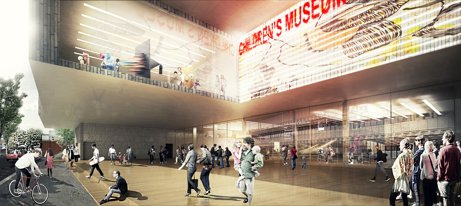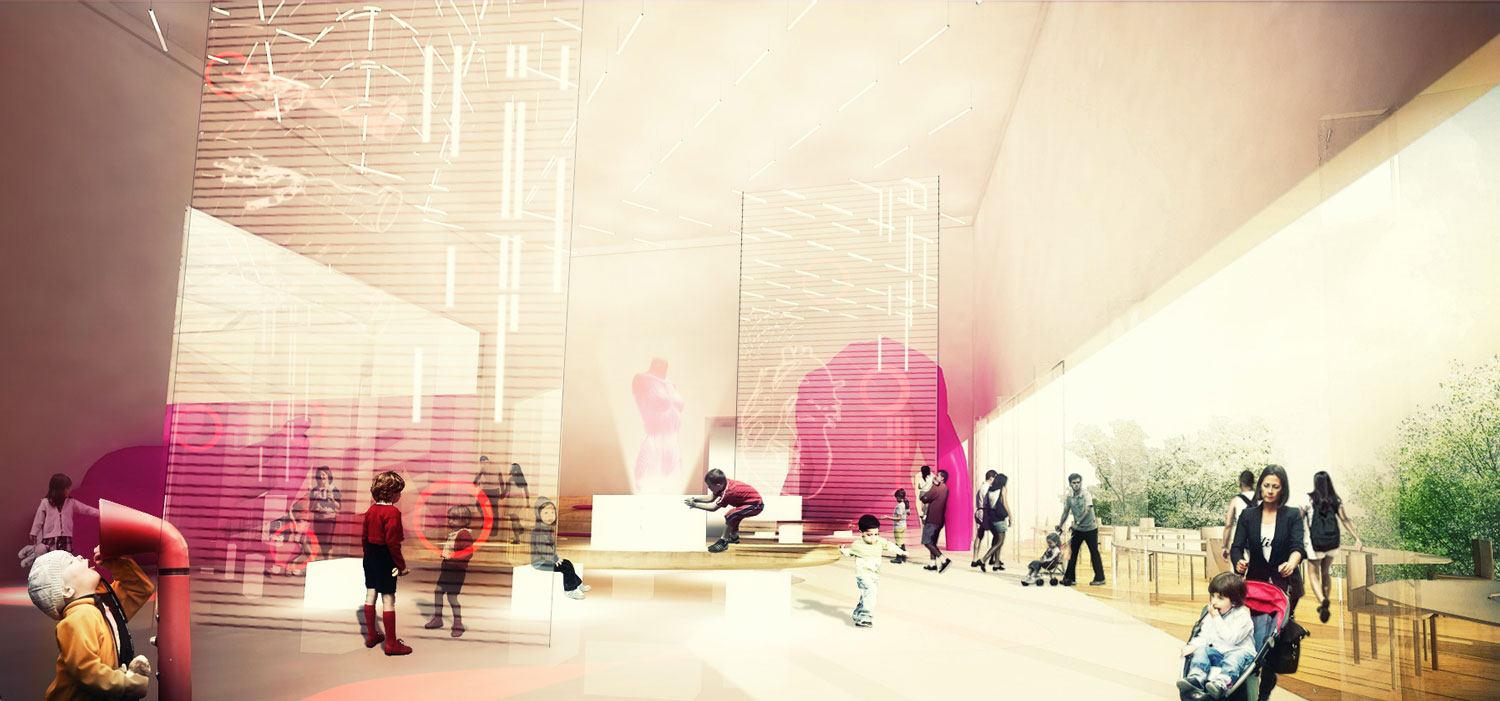 The main idea for the project for the Museum for Children of Louisville is based on the simple analysis that one of the most important thing for a child is his play-box. Thus, the museum proposes spaces with multiple treatments, reflect of the diversity of toys contained in the box. Each space is one moment of discovery and has a ludic spirit. The central atrium is at the heart of the project, it offers an overall vision of the giant play-box. To cause, the child curiosity, was one of the major challenge of this project. A space is entirely dedicated to them. In addition, this museum is the expression of a three-dimensional architecture where each space were created with the same attention in order to have a project of high cultural value.