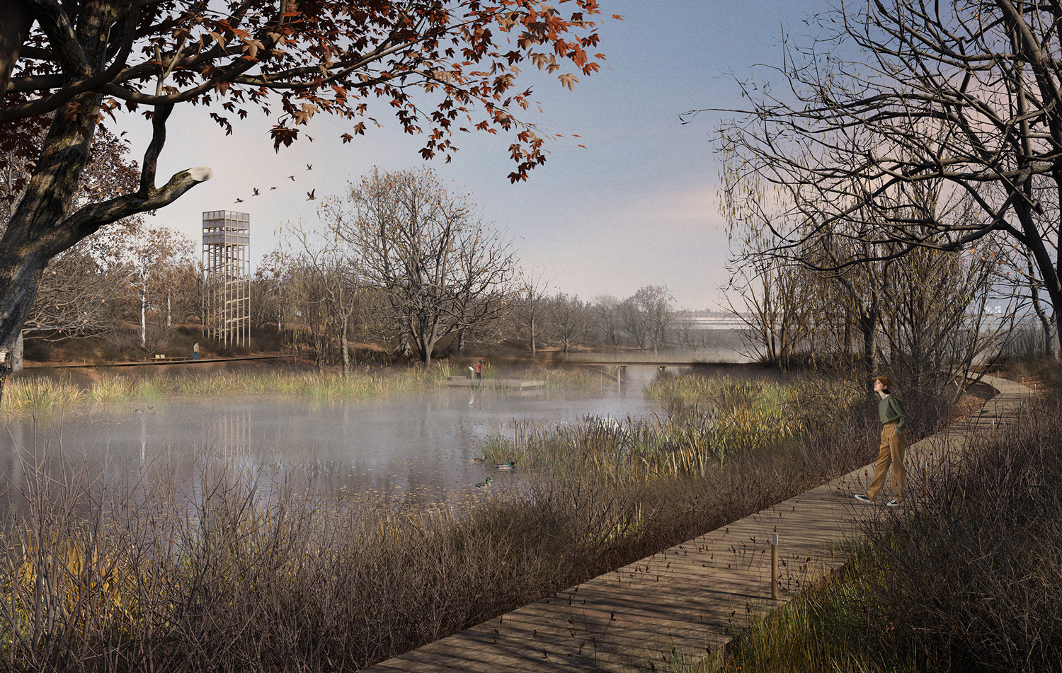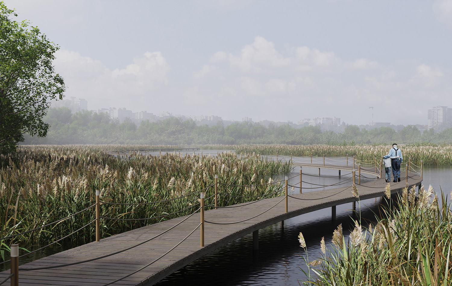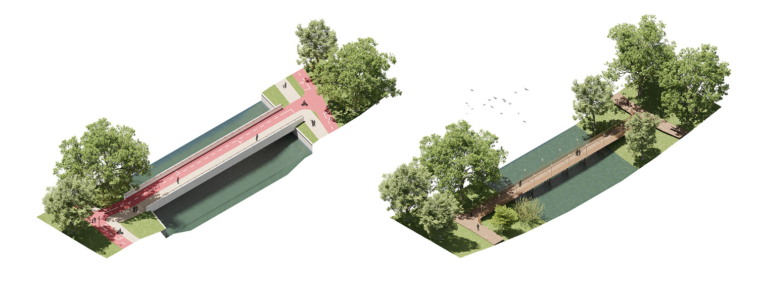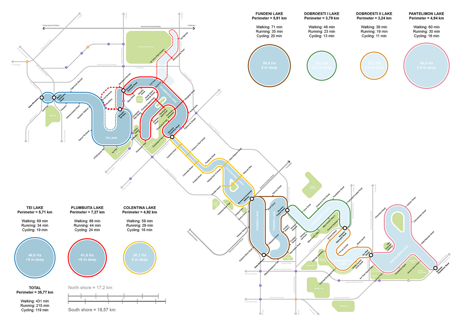 The collection of bodies of water generated along the “lake necklace” on Colentina River has serves as a thriving platform for diverse communities across centuries. However, due to uncontrolled urban development, pollution and fragmentation, the “necklace” has nowadays become disconnected, highly anthropogenized and neglected. Therefore, this project aims to restore the ecological habitats native to the lake shores, to reconnect the different communities that live in their vicinity and to transform the lakefronts into a positive space where city dwellers from the entire Bucharest and beyond can carry out leisure activities in direct connection to their surrounding natural ecosystem. The project does so by deeply understanding and emphasizing the site’s connections with the surrounding networks of green spaces, mobility and public amenities. It restores and reinforces these links, turning the “lake necklace” into a chain of vital connection pieces in the neurological grid of the city.