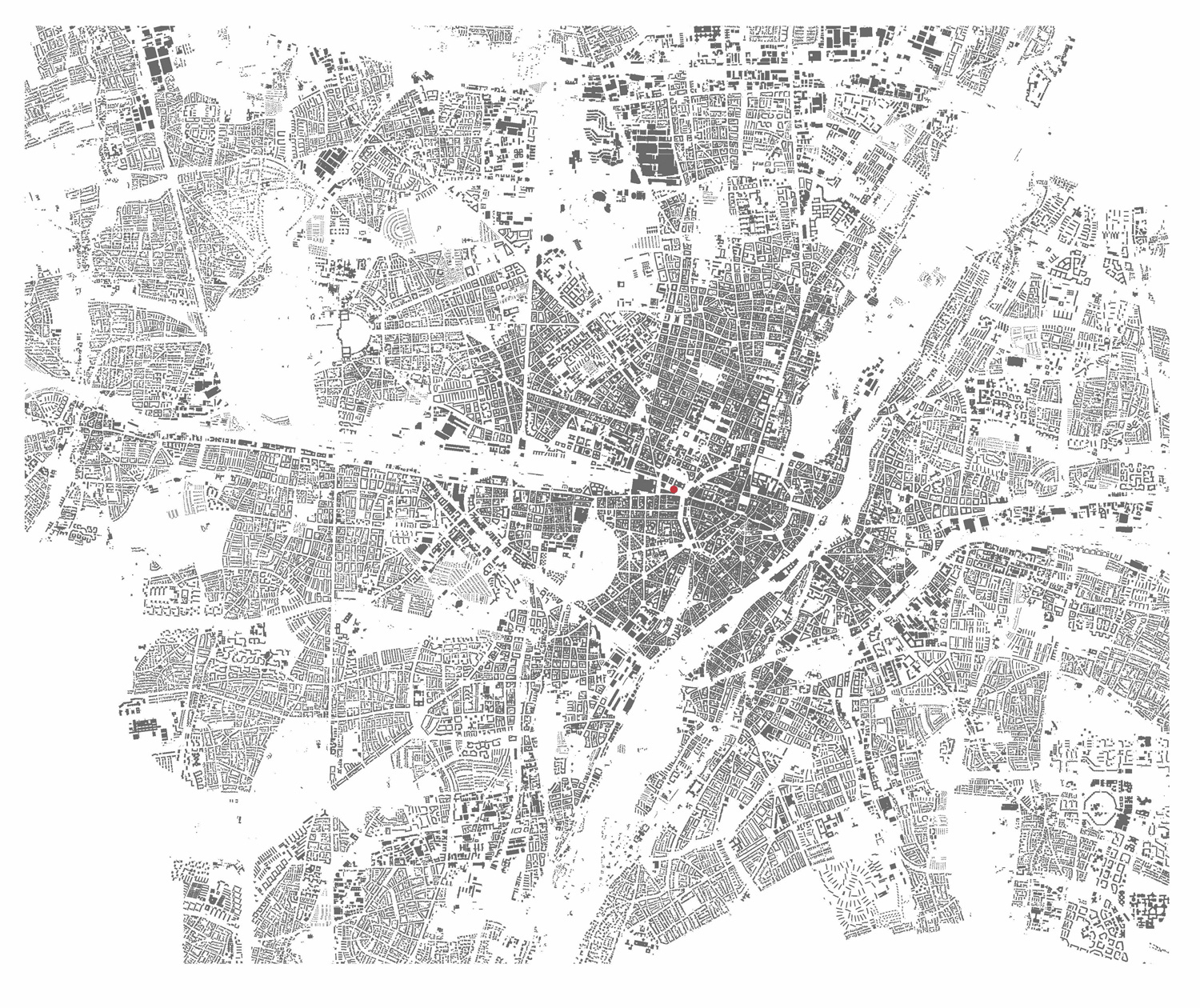El solar té ubicació davant la plaça de Karlsplatz, una antiga porta al casc antic de Munic. La plaça es troba en plena ronda del casc antic, la Sonnenstraße, per on passava l’antiga muralla. És ben a prop, també, de la estació central de trens de la ciutat, la Hauptbahnhof. Als voltants immediats, donant façana al solar, hi teni m una varietat important d’edificacions. En la seva majoria hi trobem edificacions de rellevància, d’una mida i gra especialment destacats. Per la cara nord hi trobem el Palau de Justícia (Justizpalast) i l’edifici dels jutjats i tribunal superior de Baviera (Oberland Gericht). Per la cara oest s’hi ubica un edifici de caire protegit, en aquests moments uns grans magatzems. Per la cara est hi tenim la plaça, o més ben dit, nus de ronda de Karlsplatz.
