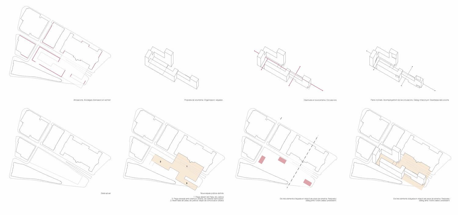 – Dotar d’una plaça inexistent davant la façana del palau de justícia. reconeixent i donant sentit a una façana fins ara minvada.