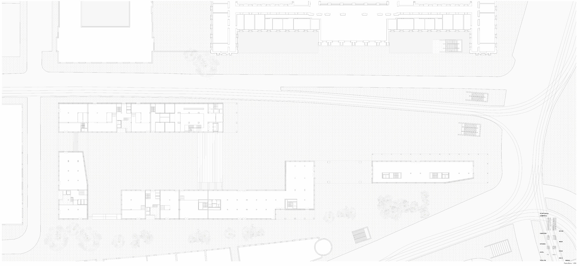 – Composició volumètrica en planta en diàleg amb la ciutat. S’estableix un diàleg de l’arquitectura en planta, prenent en consideració els elements decomposició moderna asimètrica en un entorn d’arquitectura d’elements clàssics.