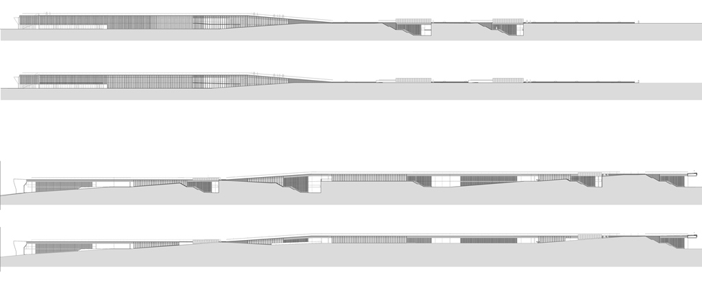 El conjunto conecta el campus de Zapateira y el Campus de Elviña. Esta pieza que falta se coloca en el sitio sin borrarlo, sin hacer desaparecer la memoria del lugar. Es una acción de cirugía: realizamos fisuras en el terreno sin llegar a separarlo e insertamos las viviendas en su interior: “Fendas”. Esta decisión comporta el desarrollo de una edificación adaptada al relieve de la ladera que reproduce con sutileza los gestos del terreno natural preexistente. Rehacer la topografía es una opción clara de integración en el paisaje.