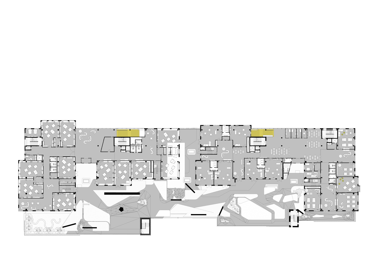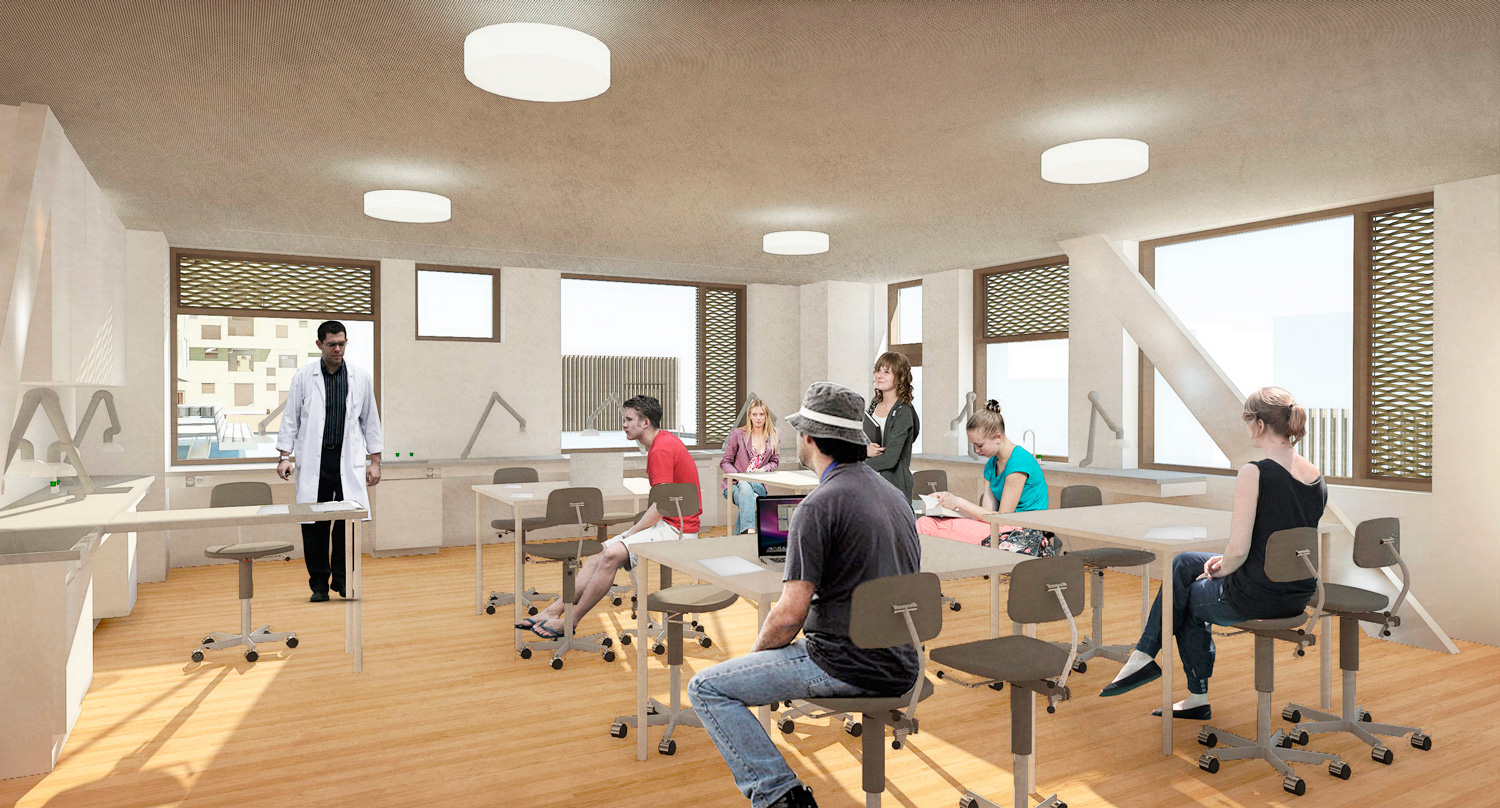 The classroom units can thus be closed-off outside normal school hours, while the common areas will remain open for school and local community events. The base includes a common roof terrace which will function as a school playground for the whole school – and the youngest pupils in particular. The elevated school playground provides a secure environment, which prevents students from coming too close to the water or from straying off the school premises. The school building’s unique facade will be covered in 12,000 solar panels, each individually angled to create a sequin-like effect, which will supply more than half of the school’s annual electricity consumption. The solar cells will cover a total area of 6,048 square meters, making it one of the largest building-integrated solar power plants in Denmark, estimated to produce over 200 MWh per year. In addition to contributing to the school’s green profile, the solar cells also form a permanent part of the school’s curriculum, allowing students to monitor energy production and use data in physics and mathematics classes.