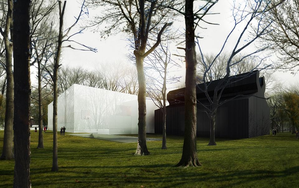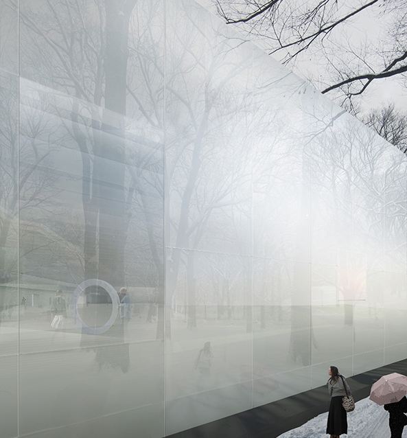 The expansion will feature natural daylight using a sophisticated light-metering system. Diffused skylights provide a majority of the lighting required to view the art. Electric track lighting is programmed to complement and spotlight the art by adjusting to changes in exterior natural light levels. Photocells located on the roof of the building work with the electric track lighting controls to blend the daylight and electric light levels in order to optimize energy consumption during all hours of operation. Contemporary gallery façade will be made of aluminum, with perpendicular blades of ultra-thin specialty glass. Windows and skylights that punctuate the façade will be double glazed insulated glass uses high performance low-E (low emissivity) coating to minimize heat gain. An additional UV filtering coating of the glass further protects the art from damaging ultraviolet rays.