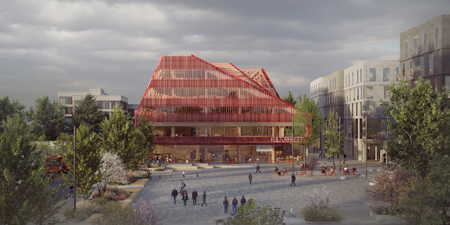 The culture house, the square and the new pedestrian street are a great opportunity to develop the area, the stadium, the light rail and the public transport terminal into a complete and varied center in Fyllingsdalen, where life and activities can be housed and cultivated all year round.