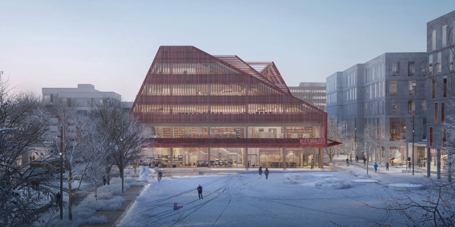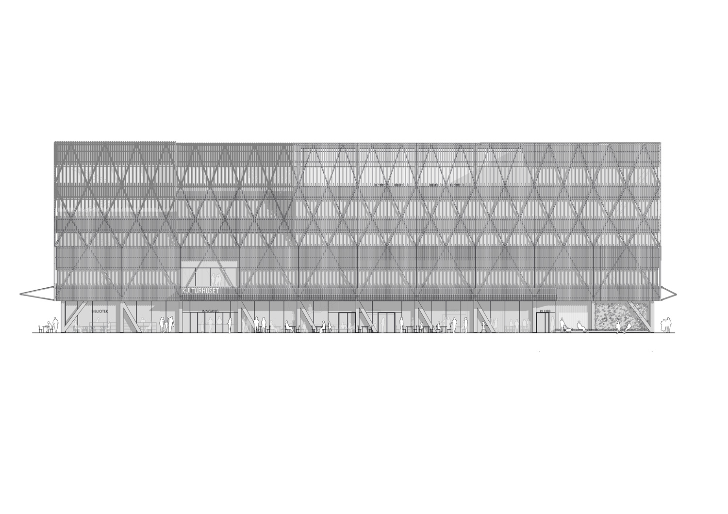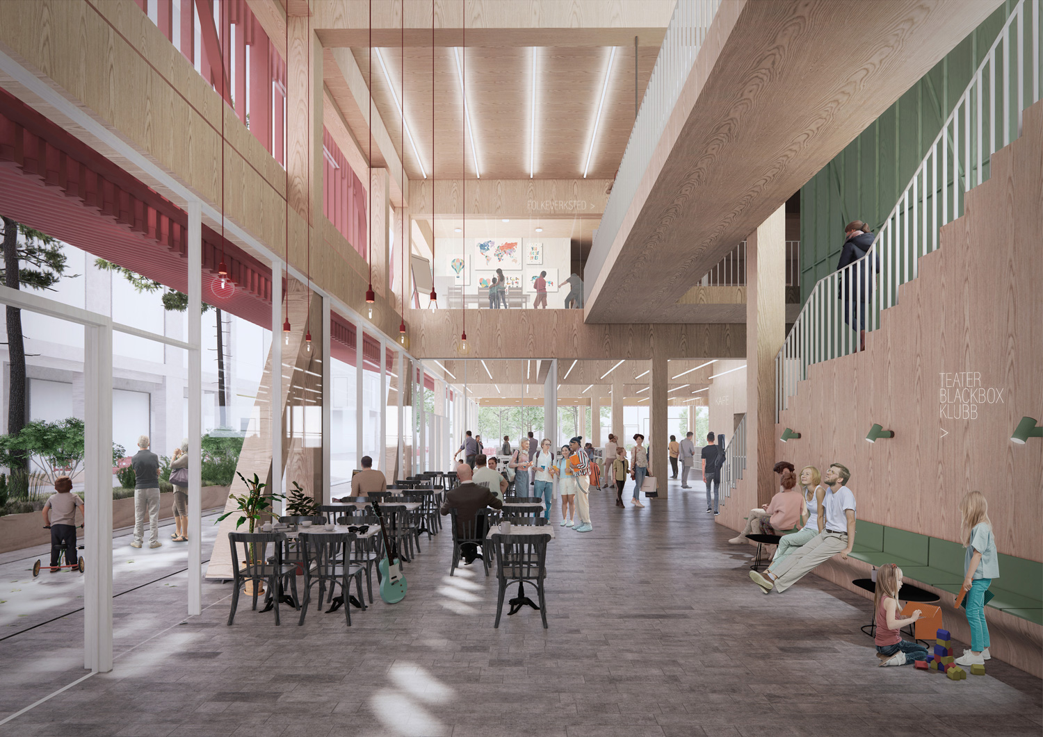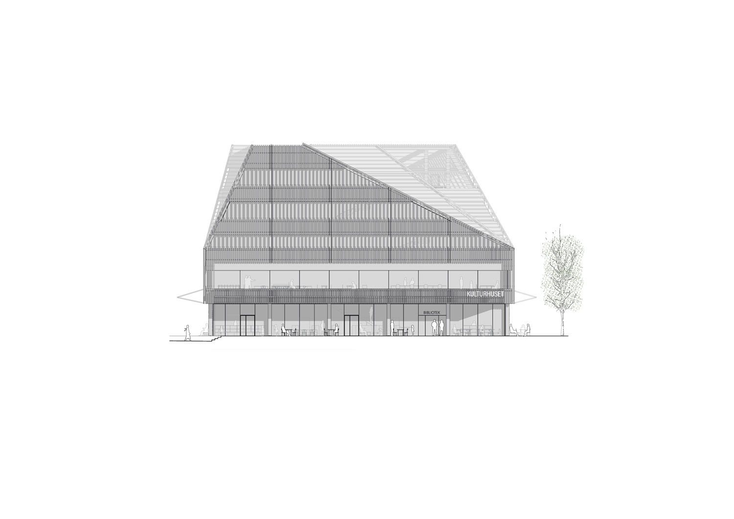The culture house will appear almost floating with its characteristic facades raised from the ground floor to provide insight and invite visitors to enter. With glass panels extending from floor to ceiling on the ground floor, the house’s activities will be displayed. The house will help to make the surrounding public rooms around the entire building exciting and safe places to stay and where there is a door leading in.